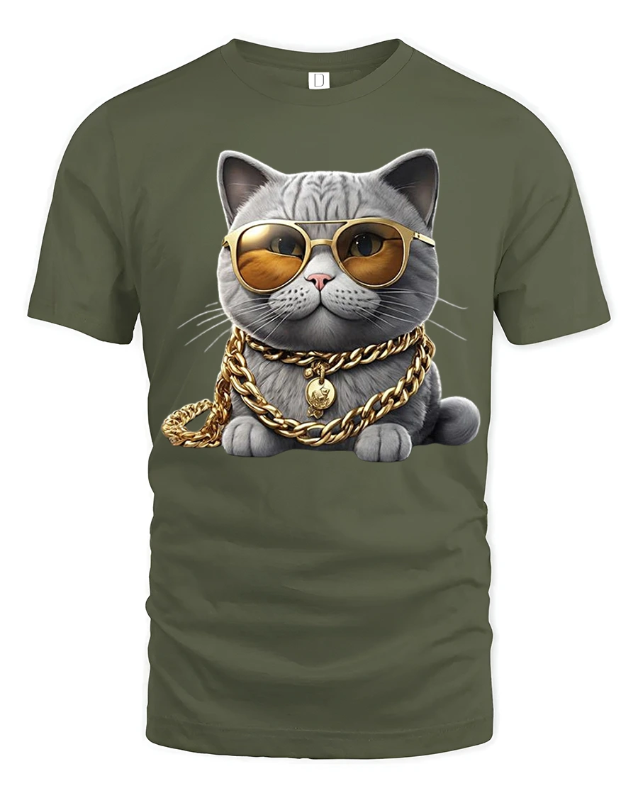 The Funny Rich Cat Art Tee With Gold Chains And Cool Attitude delivers instant confidence and humor through a bold and stylish design.