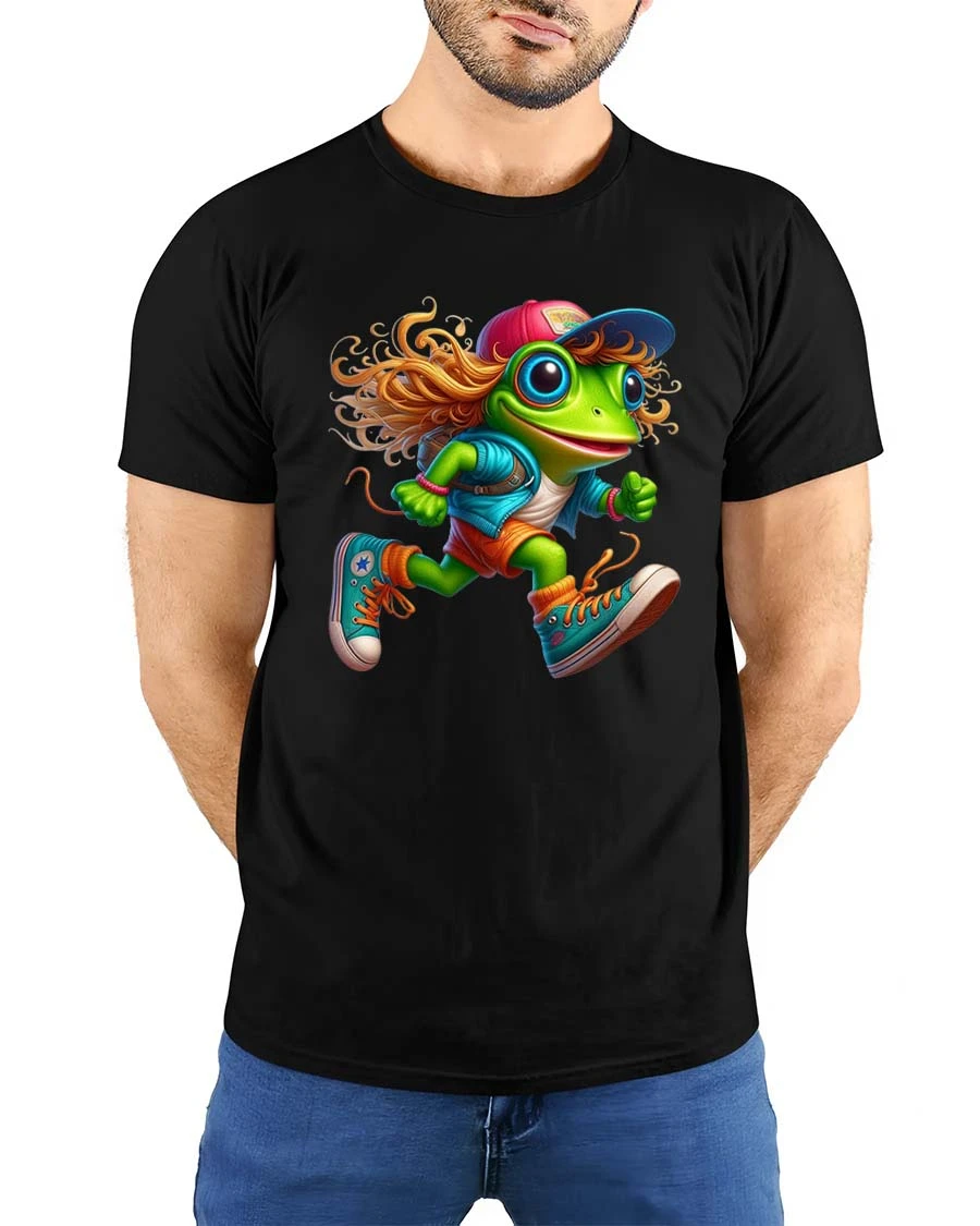 Funny Running Frog Cartoon Graphic T Shirt Cool Street Style brings color, humor, and creativity to everyday fashion.