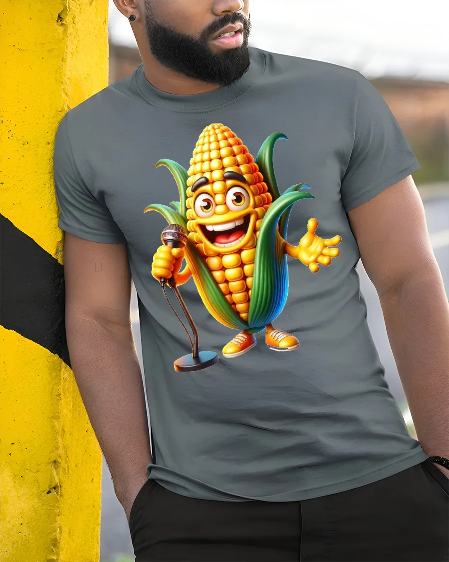 Funny Singing Corn Character Tee with Microphone Comedy Style brings humor, charm, and personality to any outfit. Featuring a cheerful cartoon corn character holding a microphone and performing with enthusiasm, this playful graphic tee is perfect for anyone who loves puns, food humor, or fun and quirky designs. The bright colors, expressive face, and animated pose make the artwork stand out and guarantee smiles wherever you go.