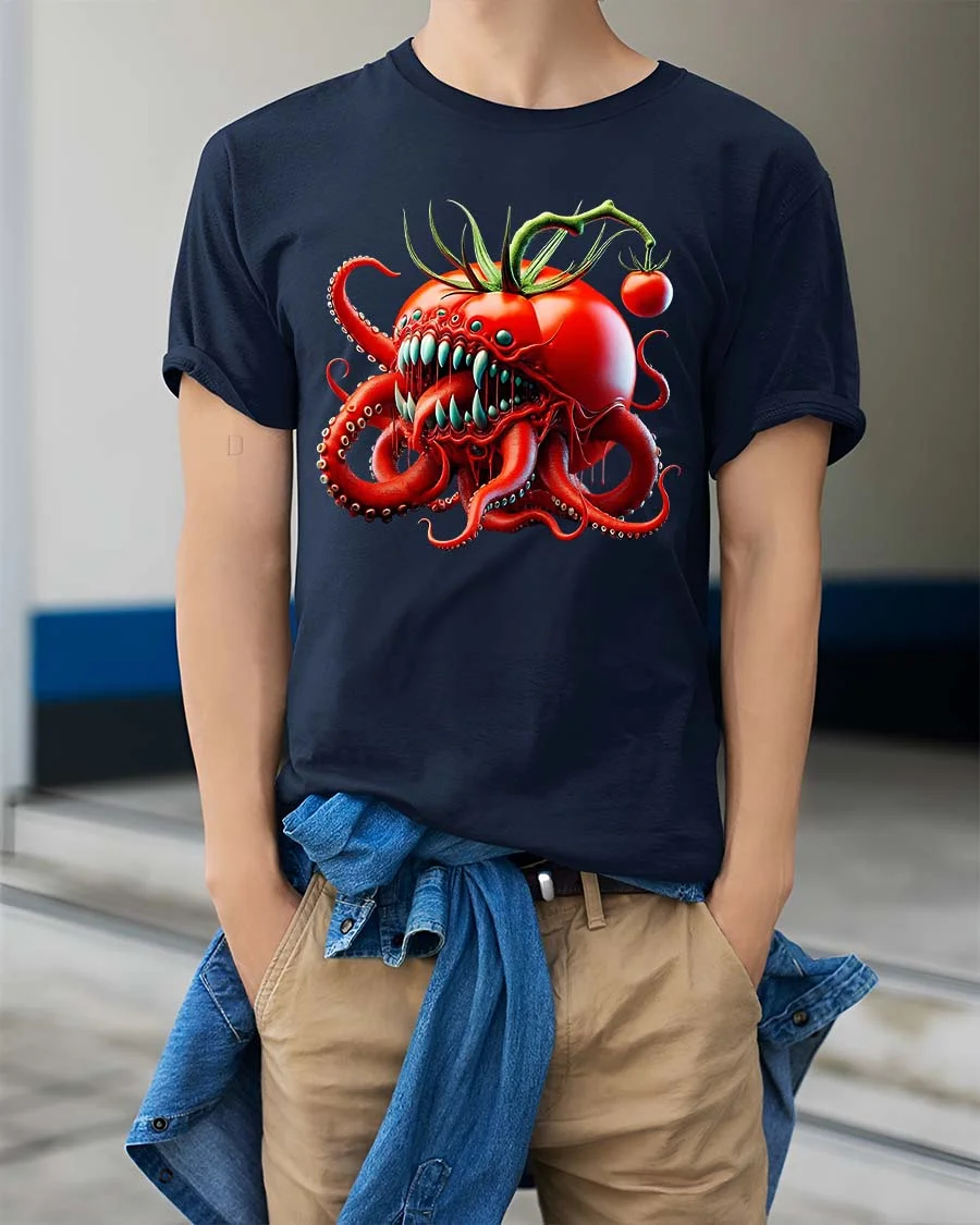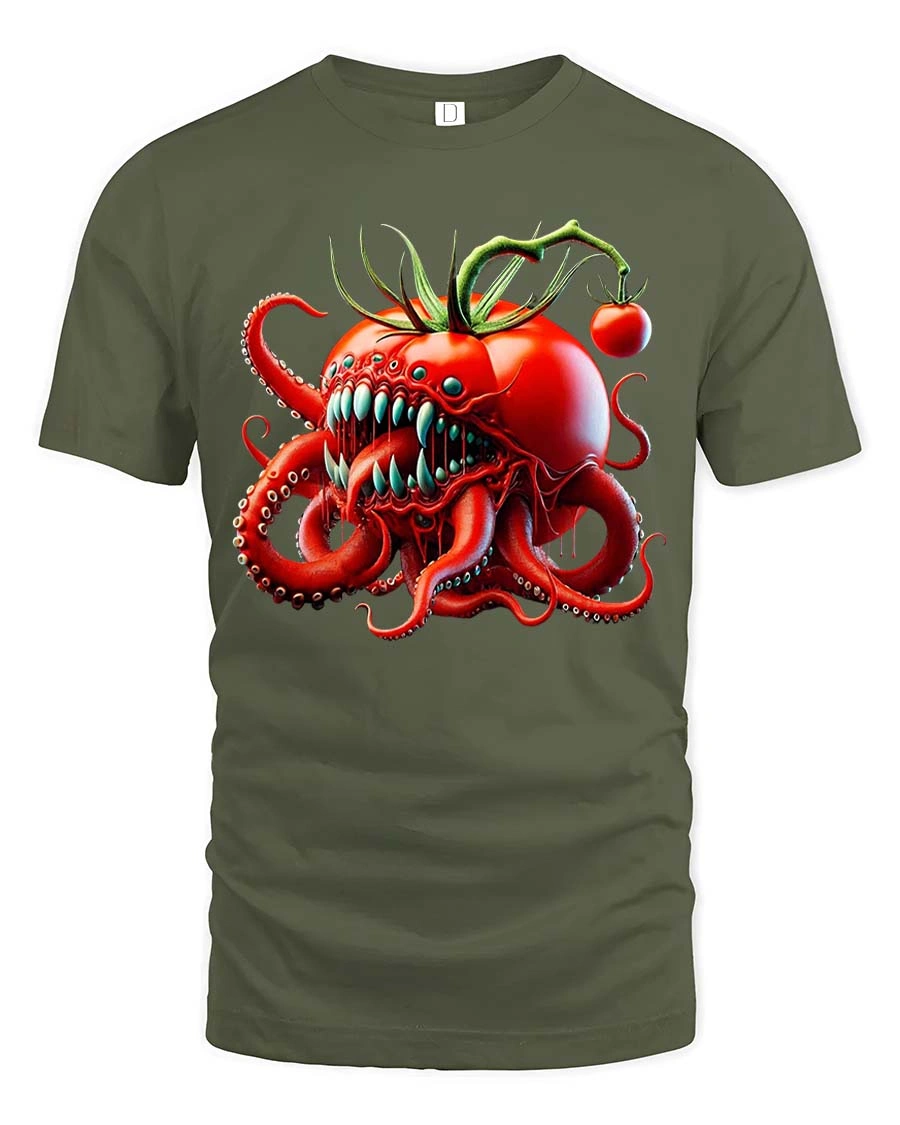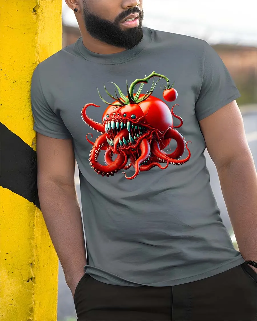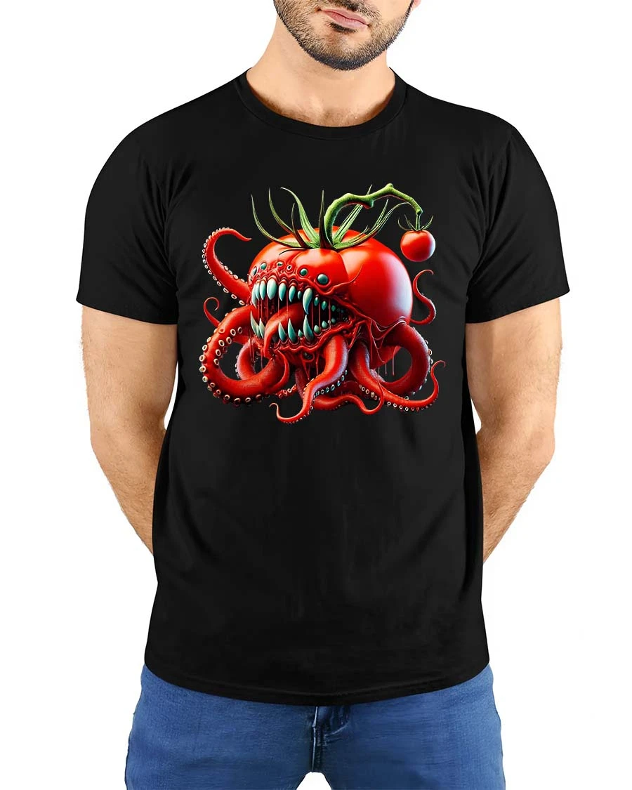 Funny Tomato Monster Octopus Graphic T Shirt Creepy Food Tee features a wildly creative design that blends food and horror into one unforgettable visual.