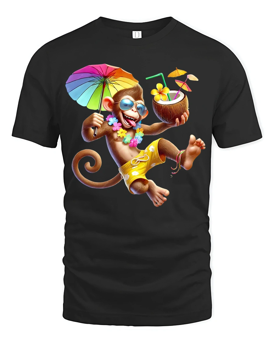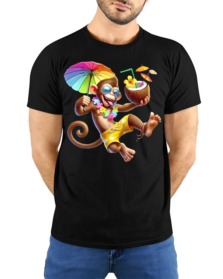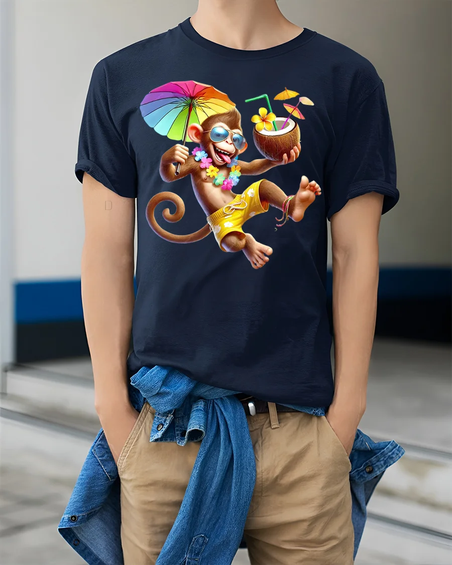 Funny Vacation Monkey Tropical Drink Summer Fun Graphic Tee is made from soft breathable fabric designed for everyday comfort.