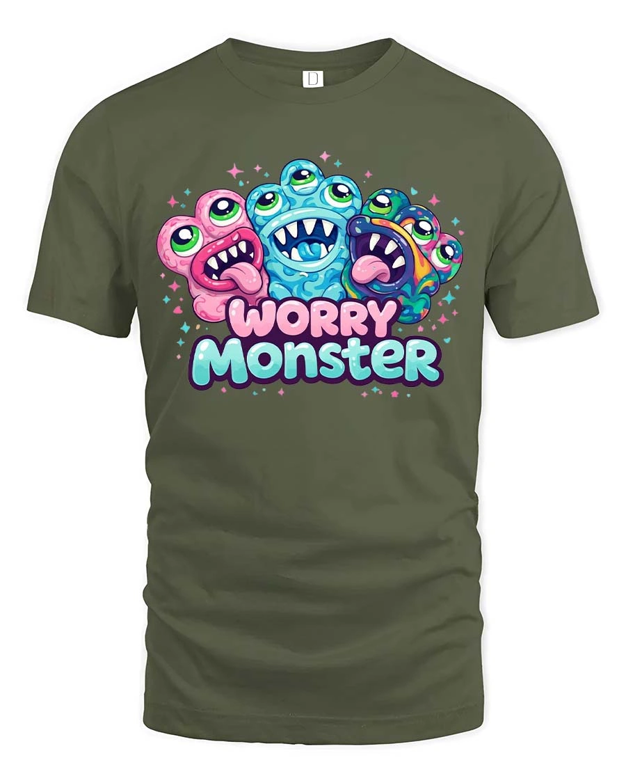 Funny Worry Monster T Shirt Cute Anxiety Cartoon Vibes brings a playful and expressive design that captures emotions with humor and charm.