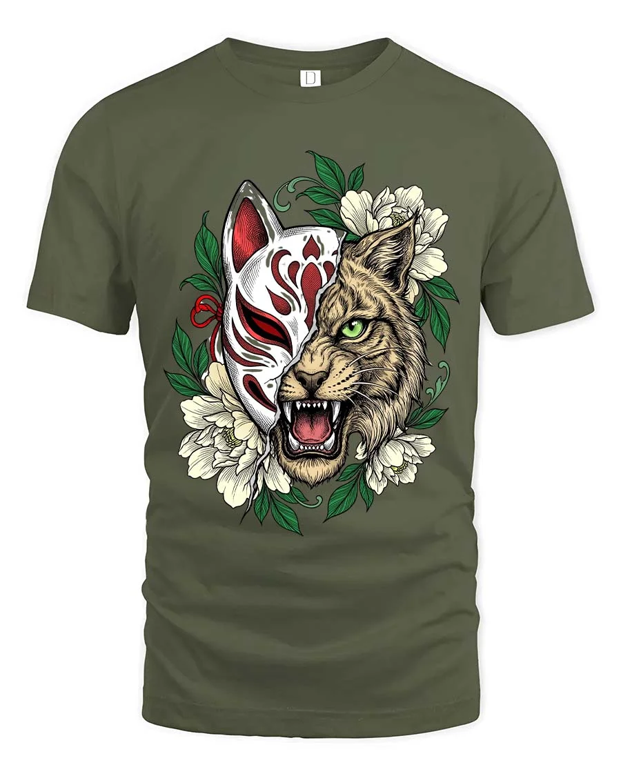Futuristic Cyber Wolf T Shirt Neon Animal Graphic Streetwear - military green t-shirt on white background