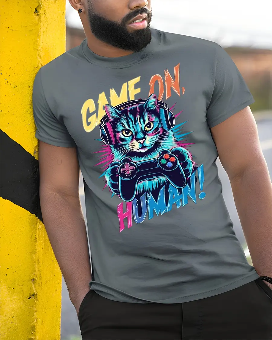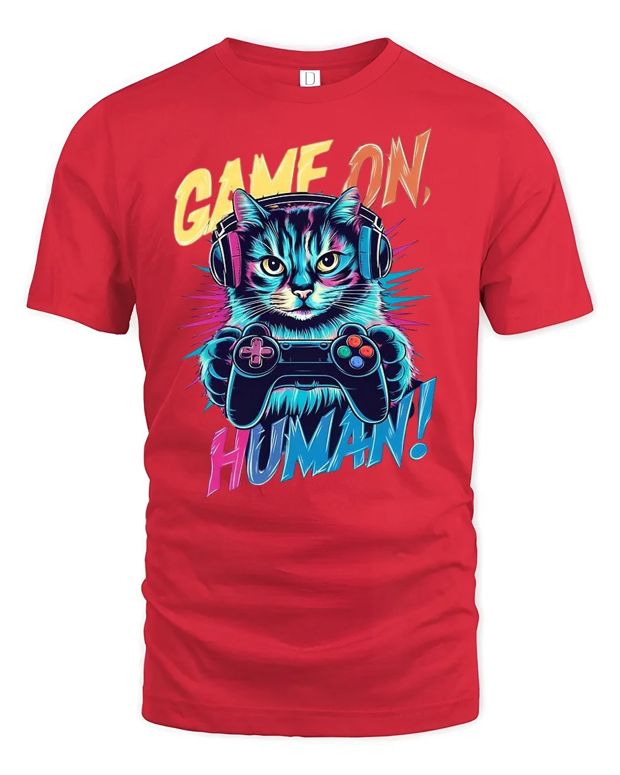 Step into gaming mode with the Game On Human Funny Cat Gamer Graphic T-Shirt, the ultimate tee for cat lovers and gamers alike. This bold design features a neon cat wearing headphones and holding a game controller with the hilarious phrase “Game On, Human!” making it the perfect mix of humor and style. Whether you’re into late-night gaming or just love quirky cat apparel, this tee is designed to level up your wardrobe.