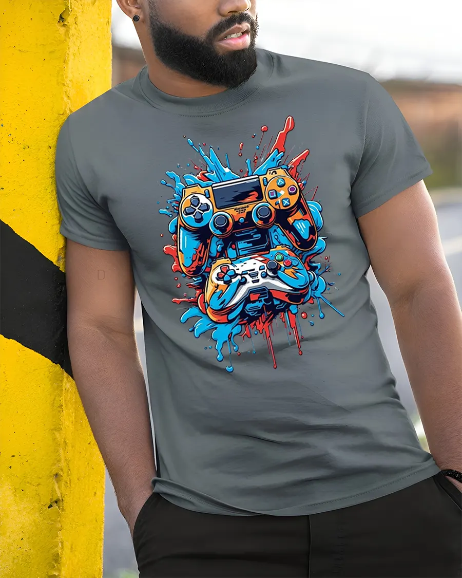 Celebrate your passion for gaming with a tee that blends artistic style, vibrant graphics and modern gamer spirit. The colorful controller artwork brings excitement, creativity and standout personality wherever you go.