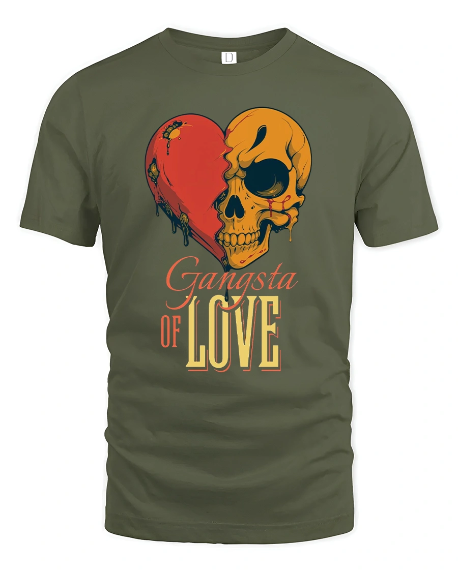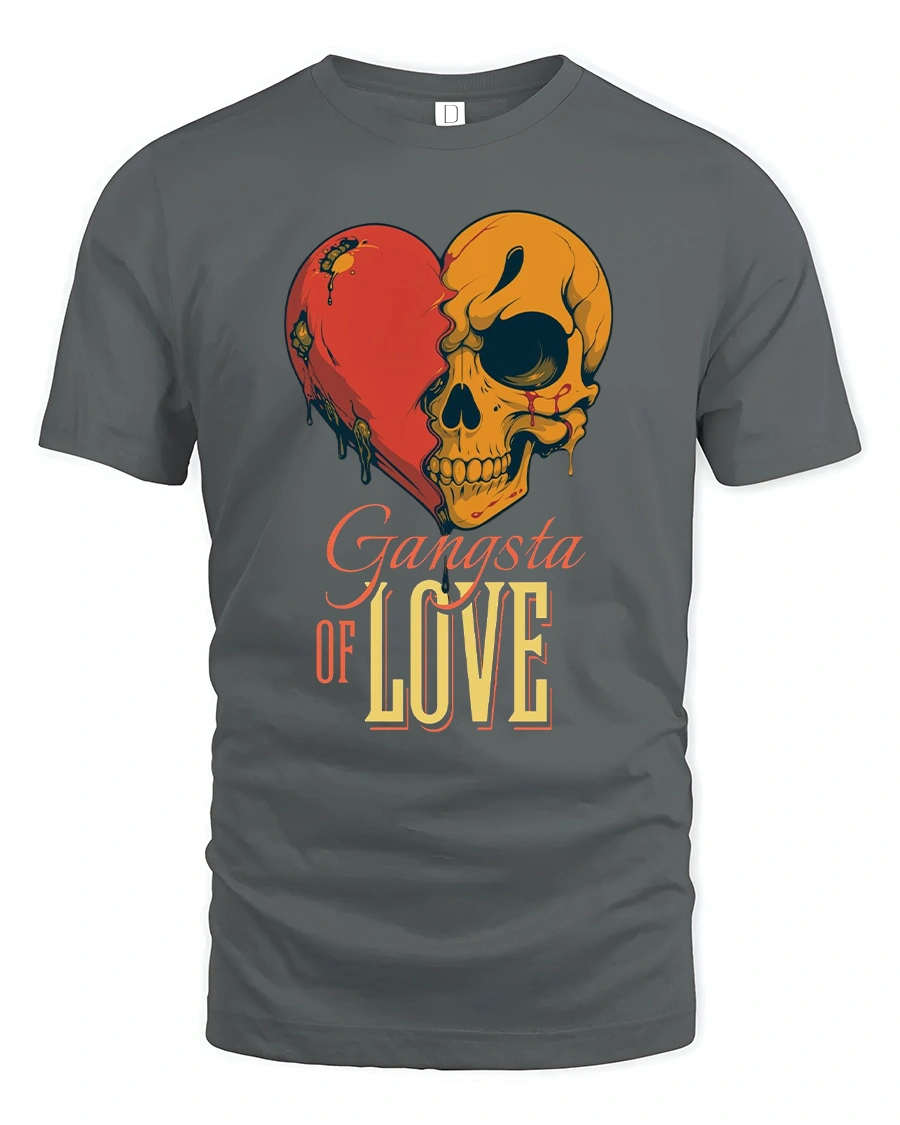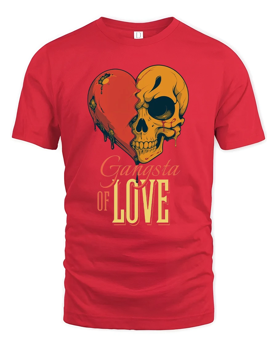 The Gangsta of Love Skull Heart Graphic Tshirt blends bold attitude with raw emotion through a striking skull and heart design.