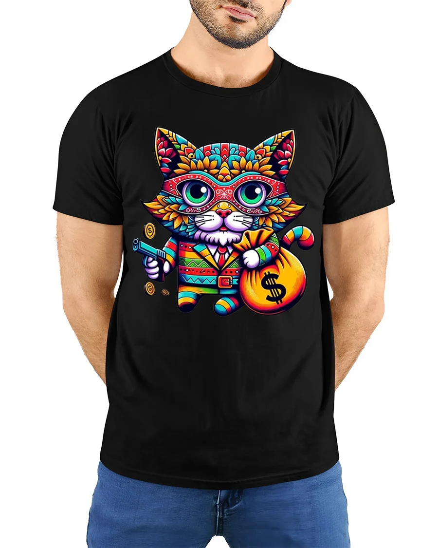 Crafted with high-quality printing and soft, comfortable fabric, this tshirt is perfect for casual outings, festivals, parties, or anyone who loves unique, eye-catching designs. The gangster kitty theme adds humor and personality, making it a great conversation starter and an excellent gift for cat lovers, streetwear fans, or anyone with a quirky sense of style.
