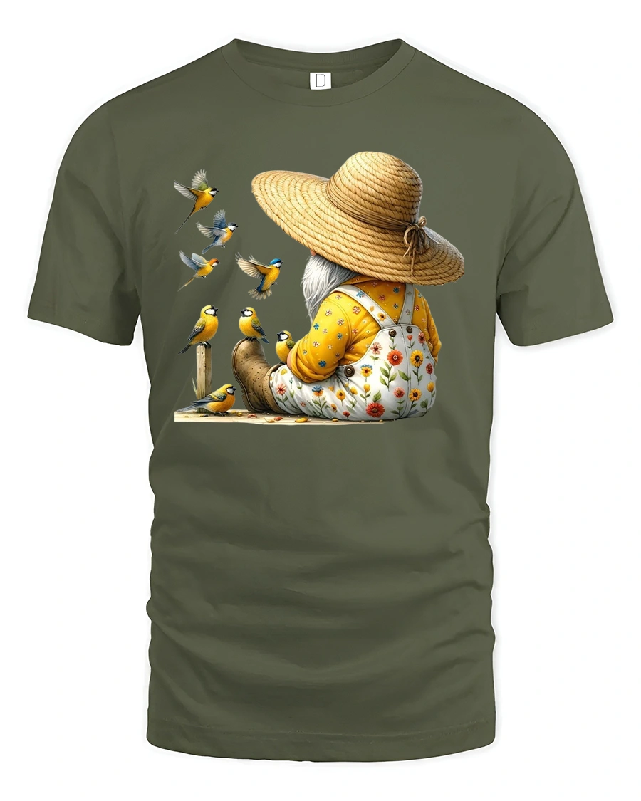 Garden Gnome With Birds T-Shirt – Cute Nature Lover Tee