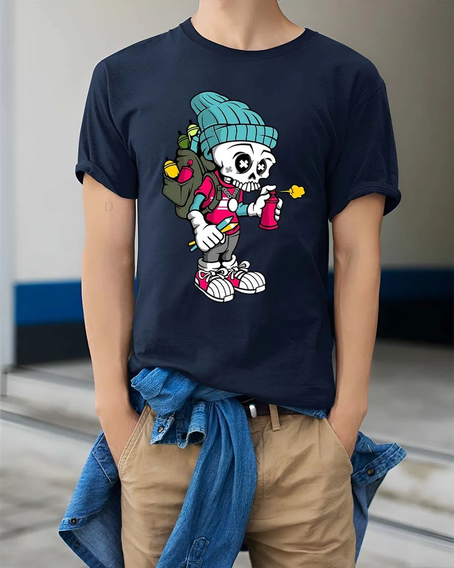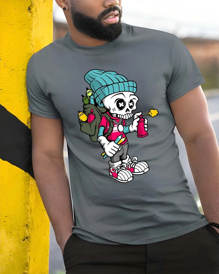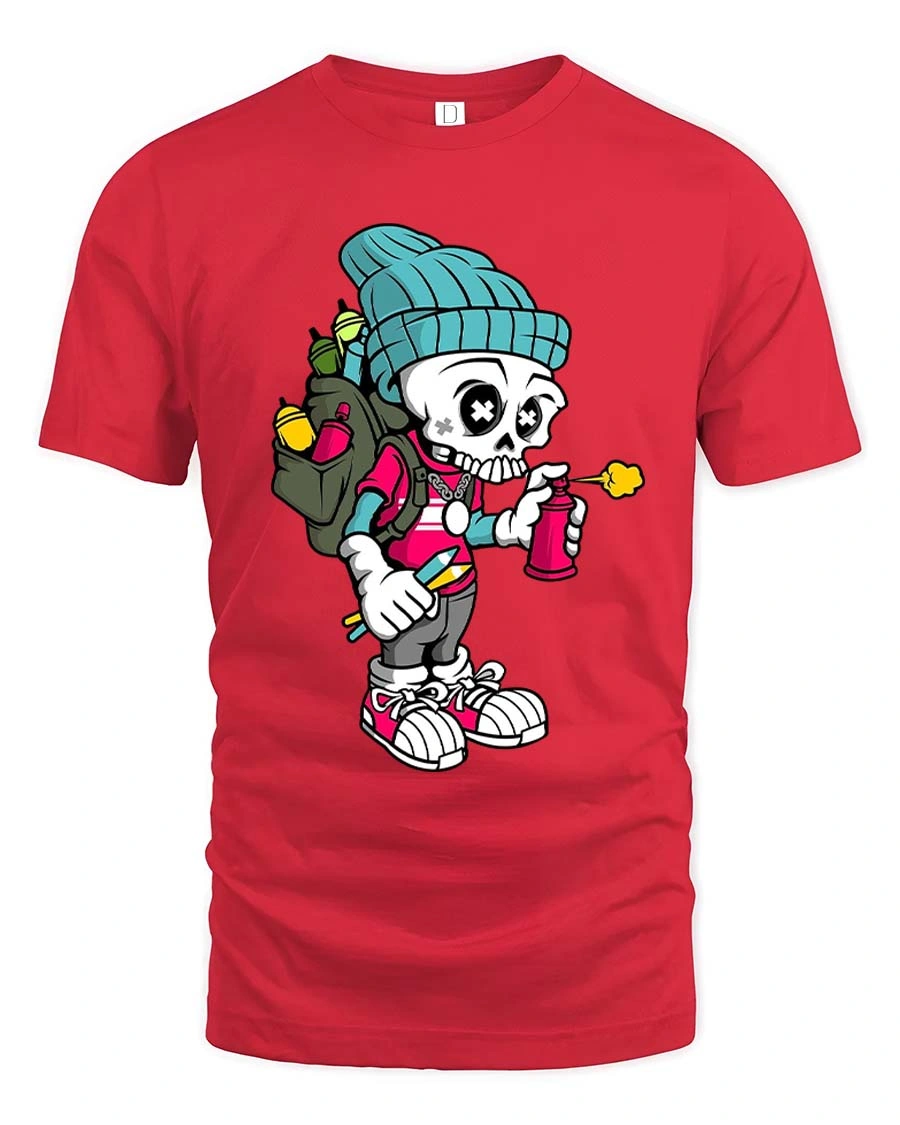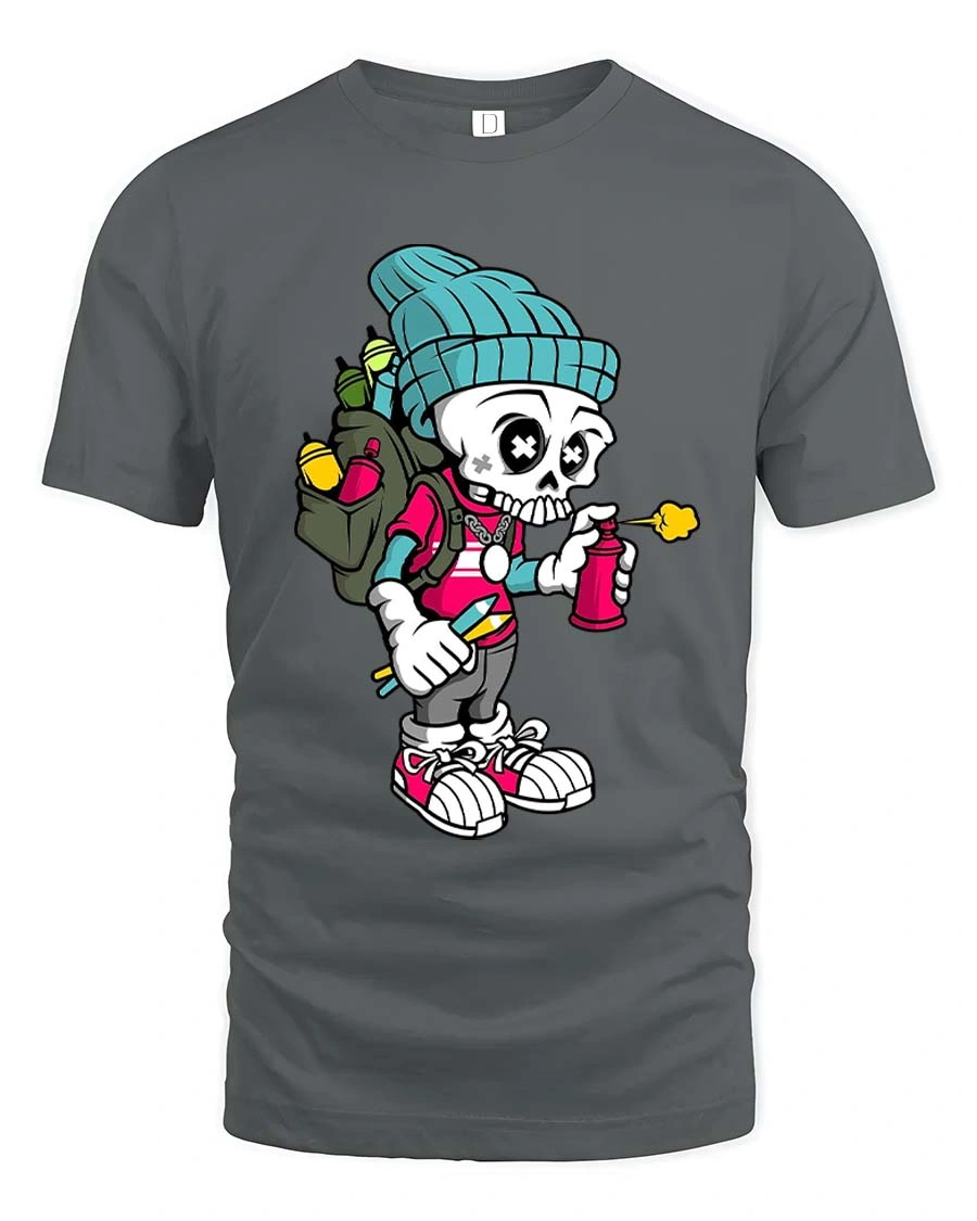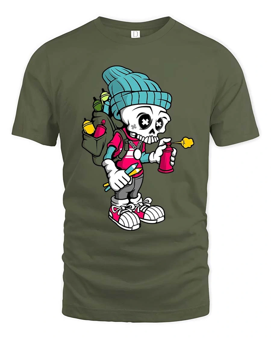 Featuring a cartoon skeleton rocking streetwear gear and holding a spray can, this graphic captures the spirit of graffiti culture with vibrant and eye catching detail.