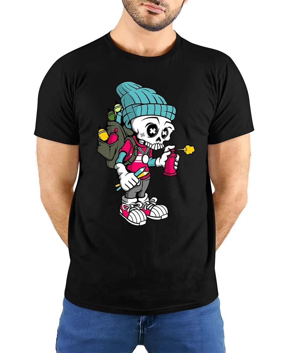 Graffiti Skeleton Artist Graphic T Shirt Funny Street Art Style Tee brings urban creativity and playful attitude into one bold design.