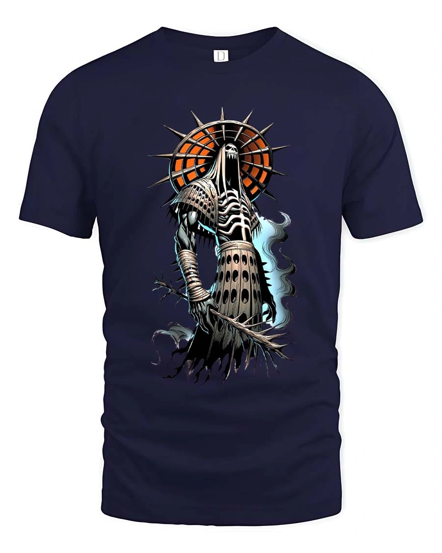 Grim Reaper Knight T Shirt Dark Fantasy Skull Warrior Tee brings a powerful and mysterious vibe to any wardrobe.