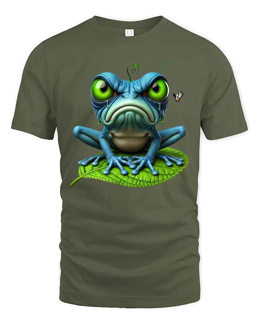 Grumpy Frog Big Eyes Funny Cute Cartoon Graphic T Shirt brings humor and personality to your everyday style.