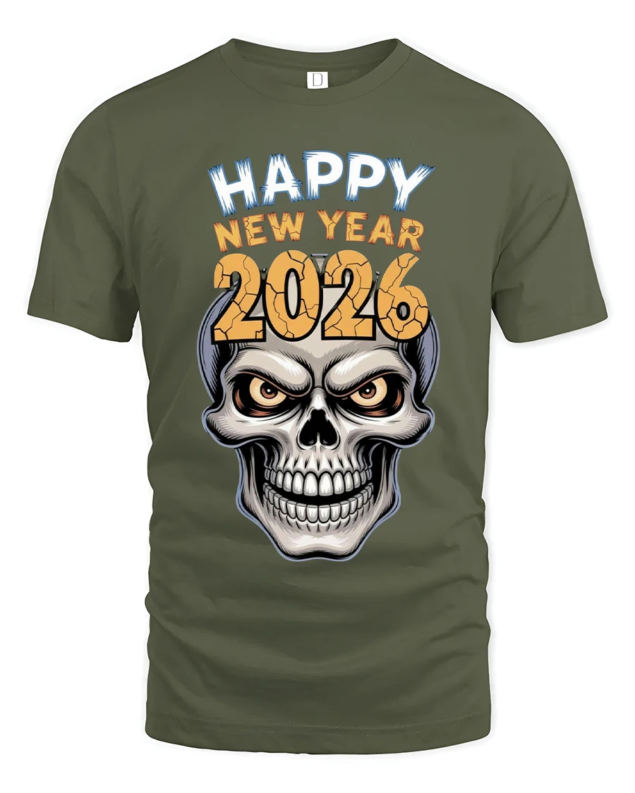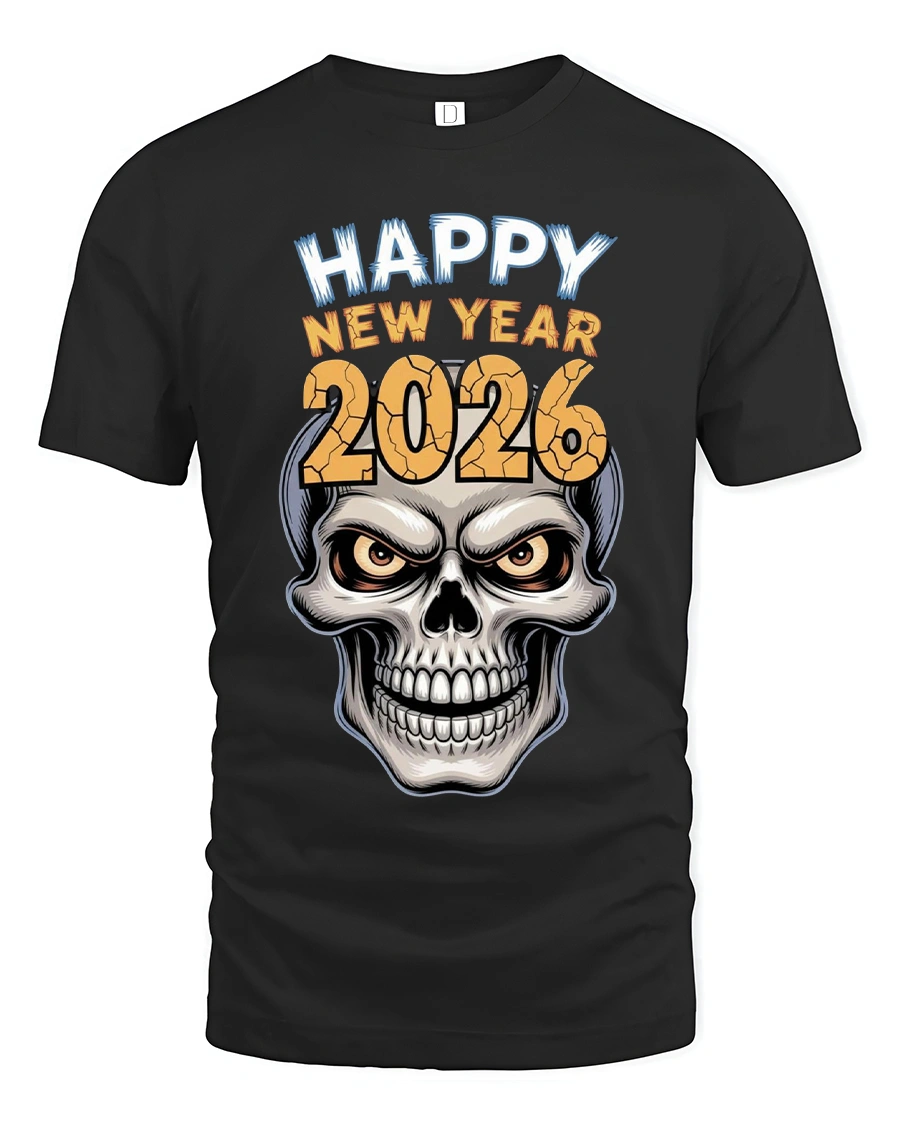 The Happy New Year 2026 Skull Graphic Tshirt Bold Party Style represents strength attitude and a fearless start to the year.