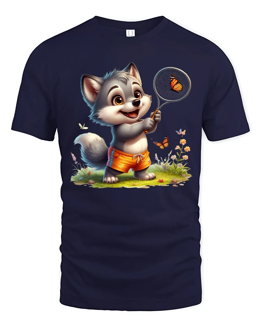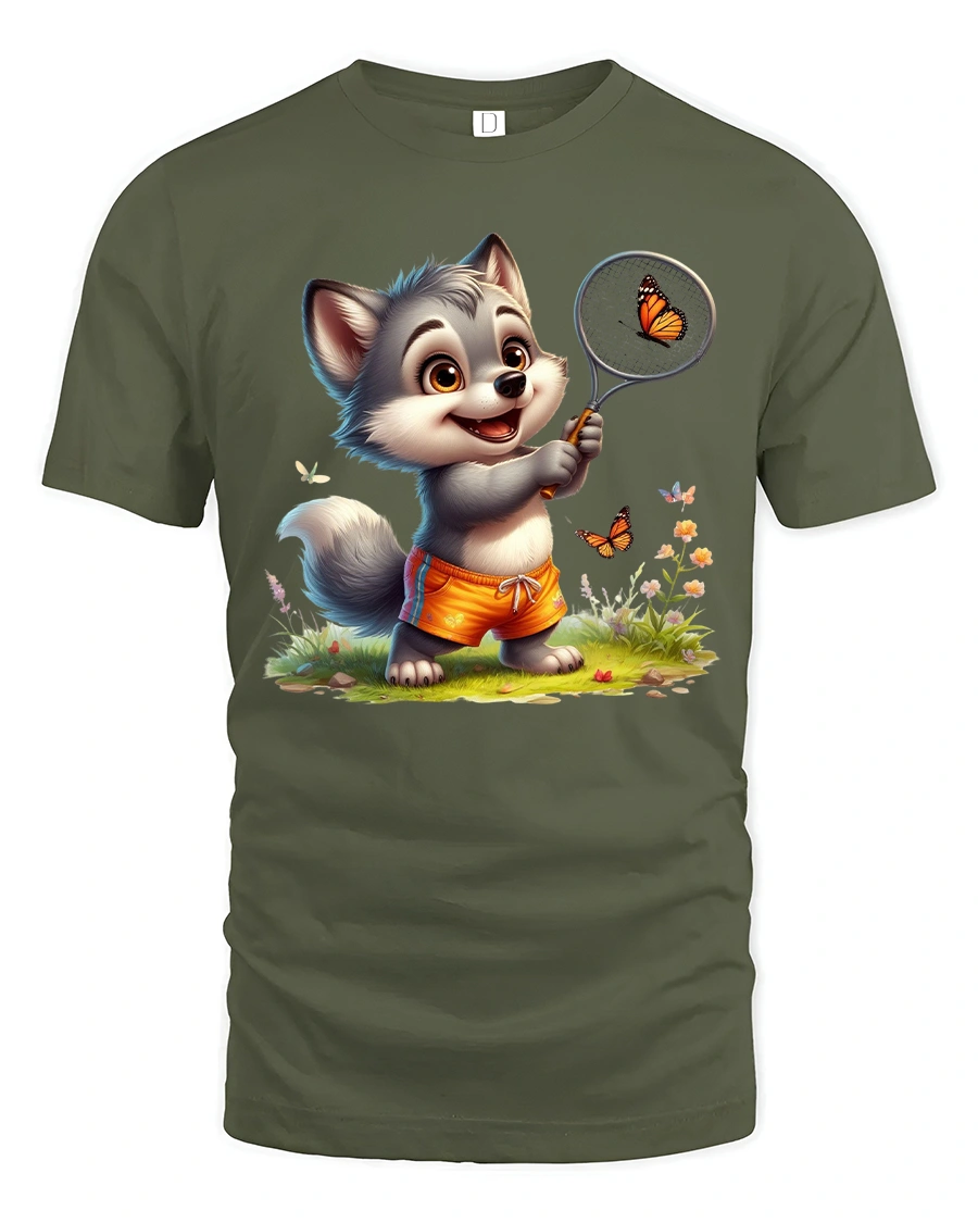 The Happy Puppy Butterfly Catcher Graphic Tee captures a heartwarming moment filled with curiosity joy and playful charm.