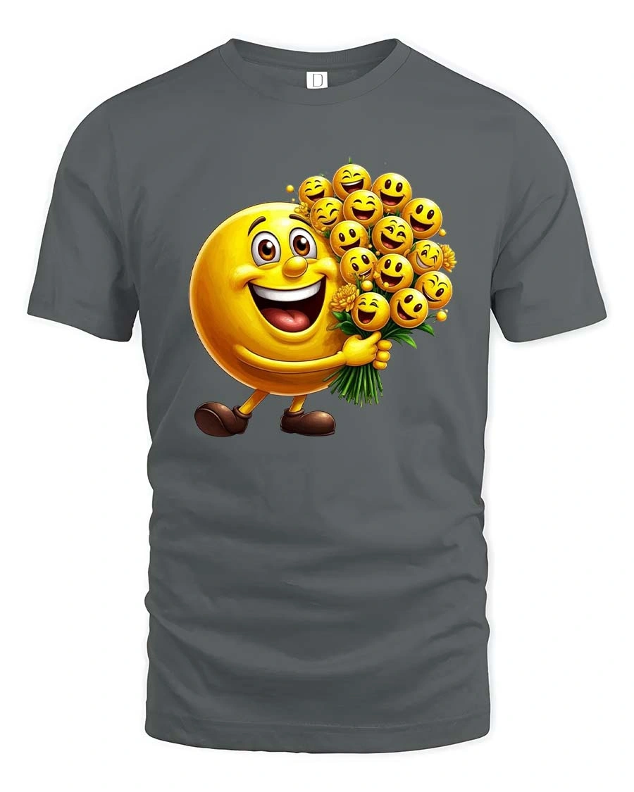 Anyone who enjoys emoji culture, playful characters, and lighthearted designs will appreciate the vibrant personality and happy spirit of this fun graphic tshirt.