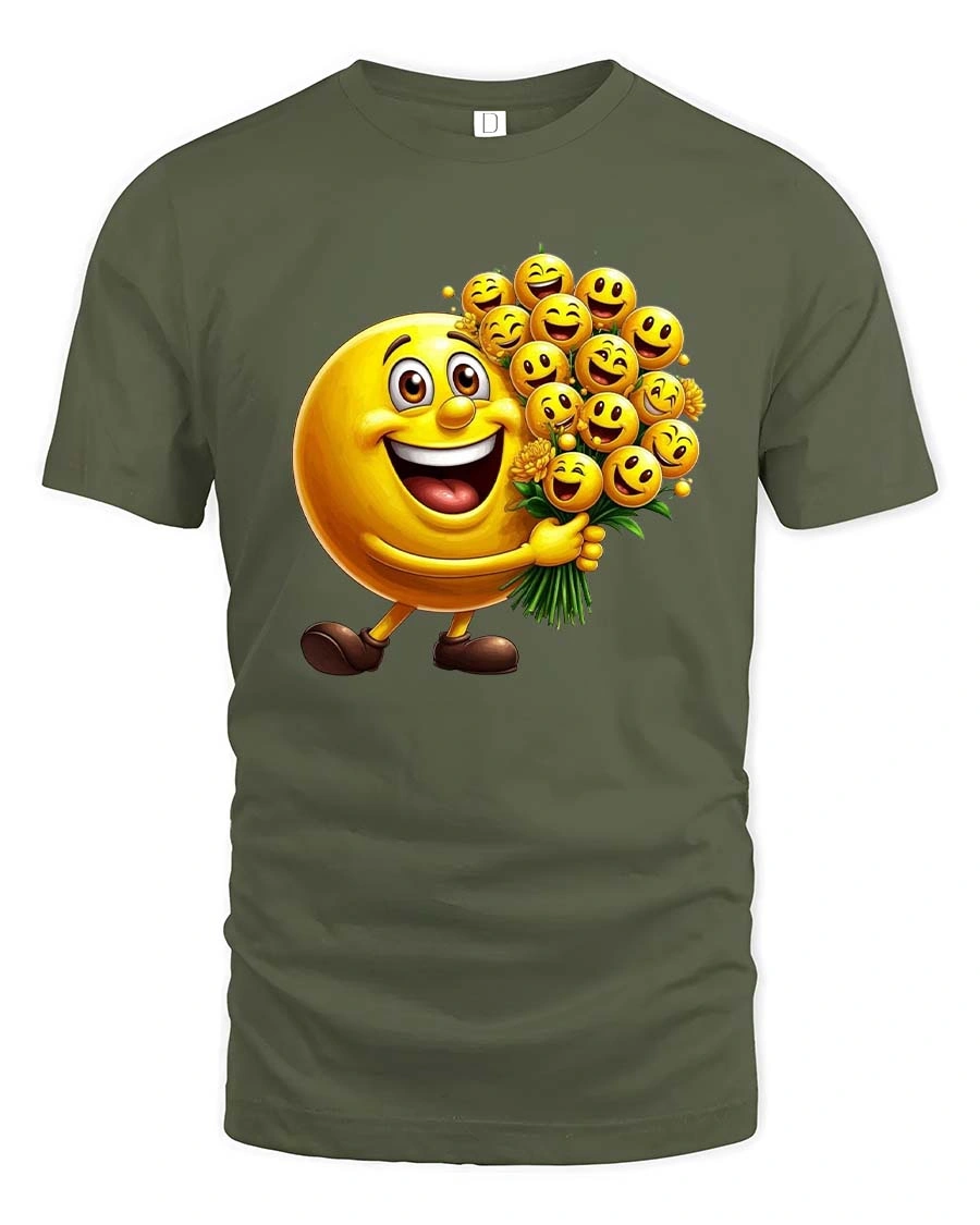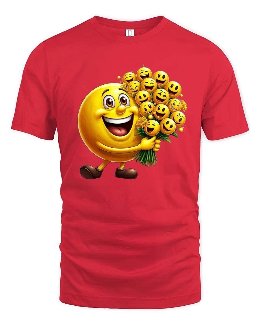 The unique emoji bouquet concept gives the shirt a charming personality that feels modern, fun, and visually engaging.