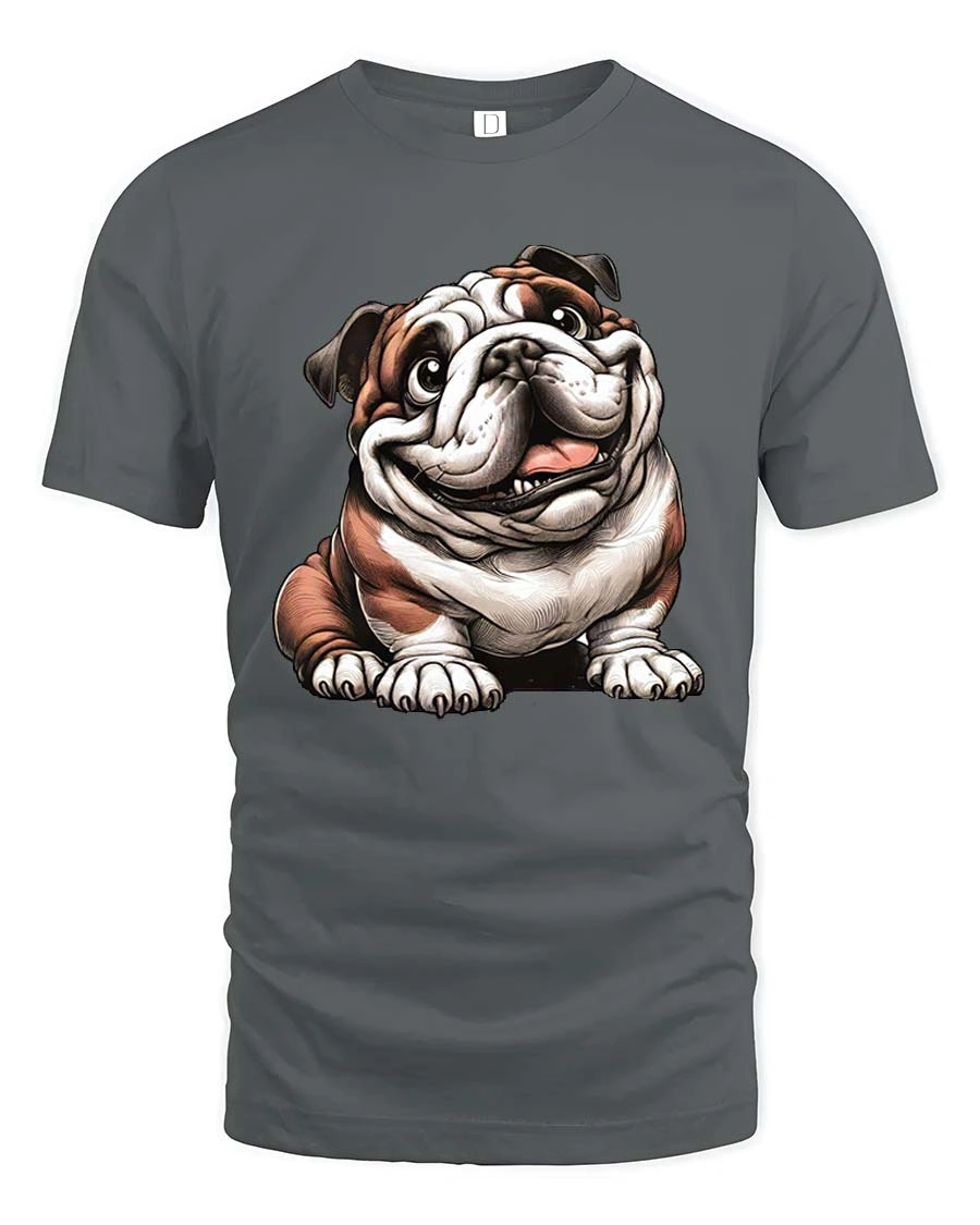 Happy Smiling Bulldog Graphic Tee Cute Funny Dog Lover Tshirt brings a cheerful and playful vibe to everyday style.