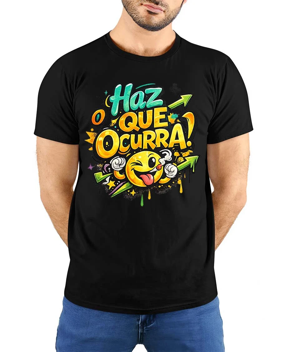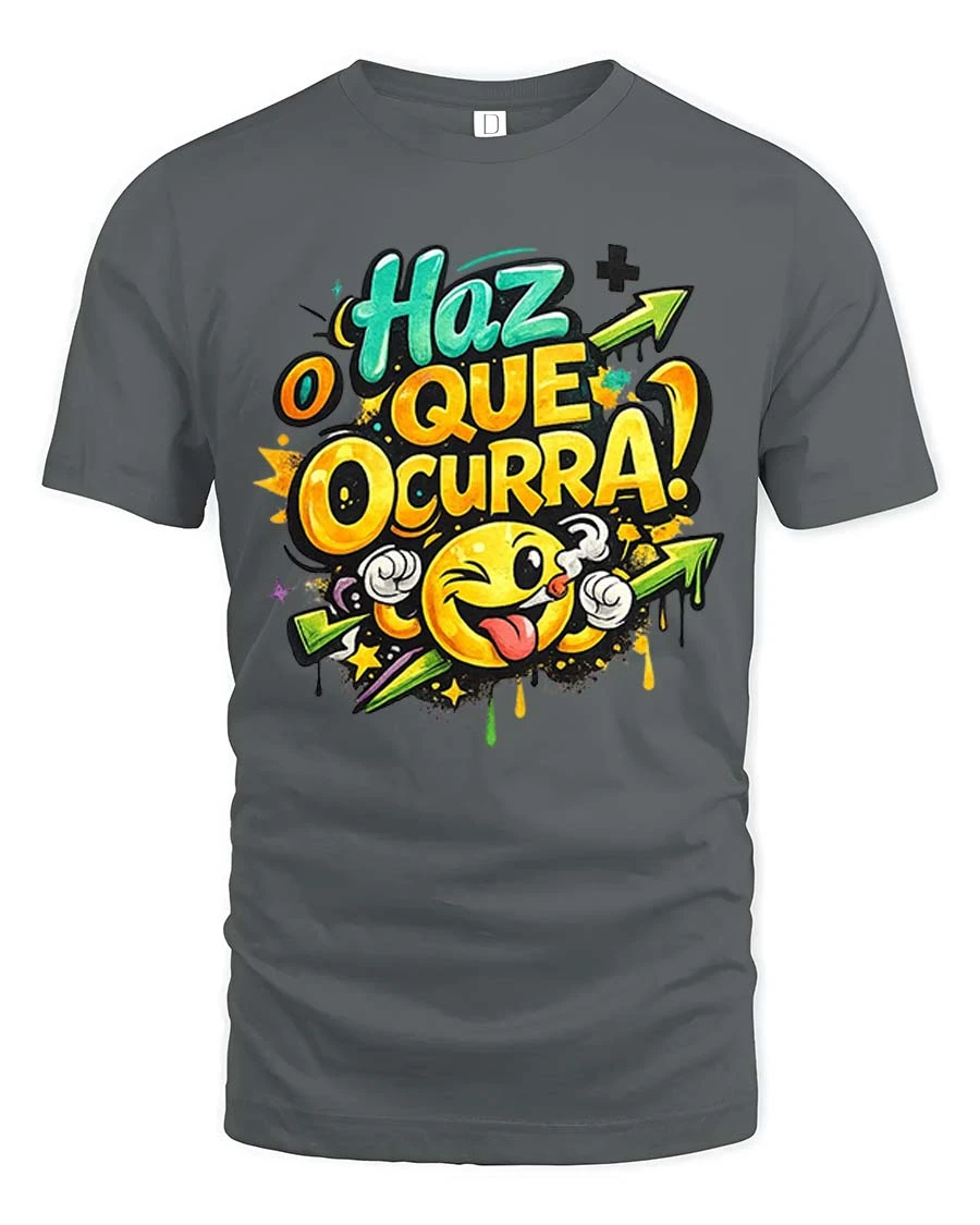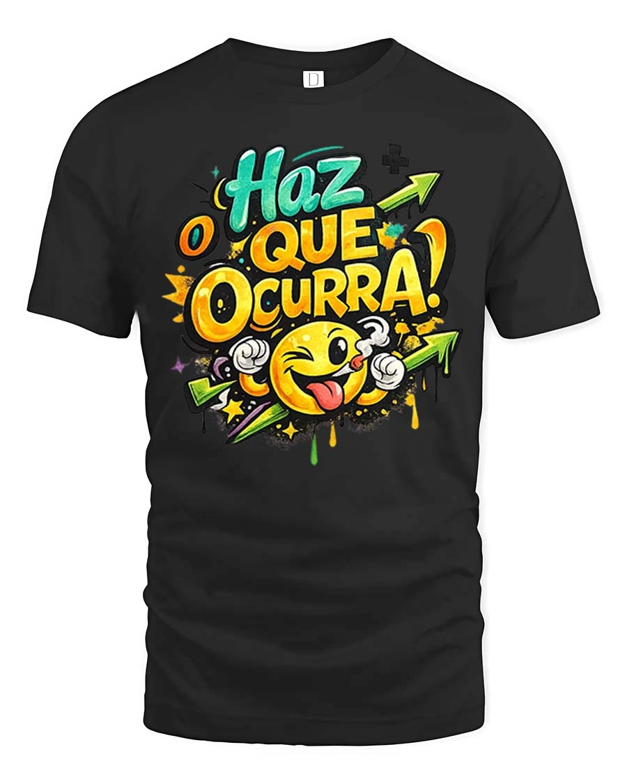 Haz Que Ocurra Smile Graphic Motivational Tshirt Fun Style brings bold energy and positive attitude into everyday fashion.