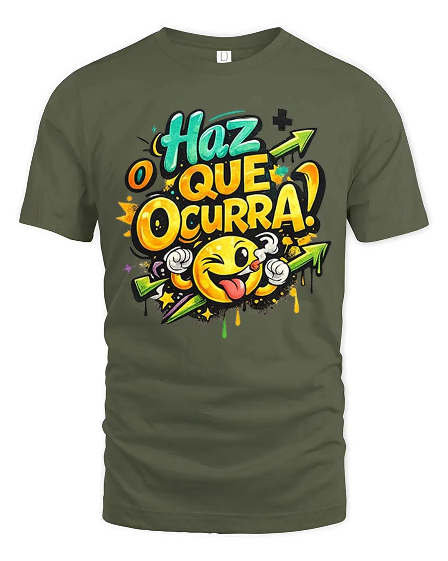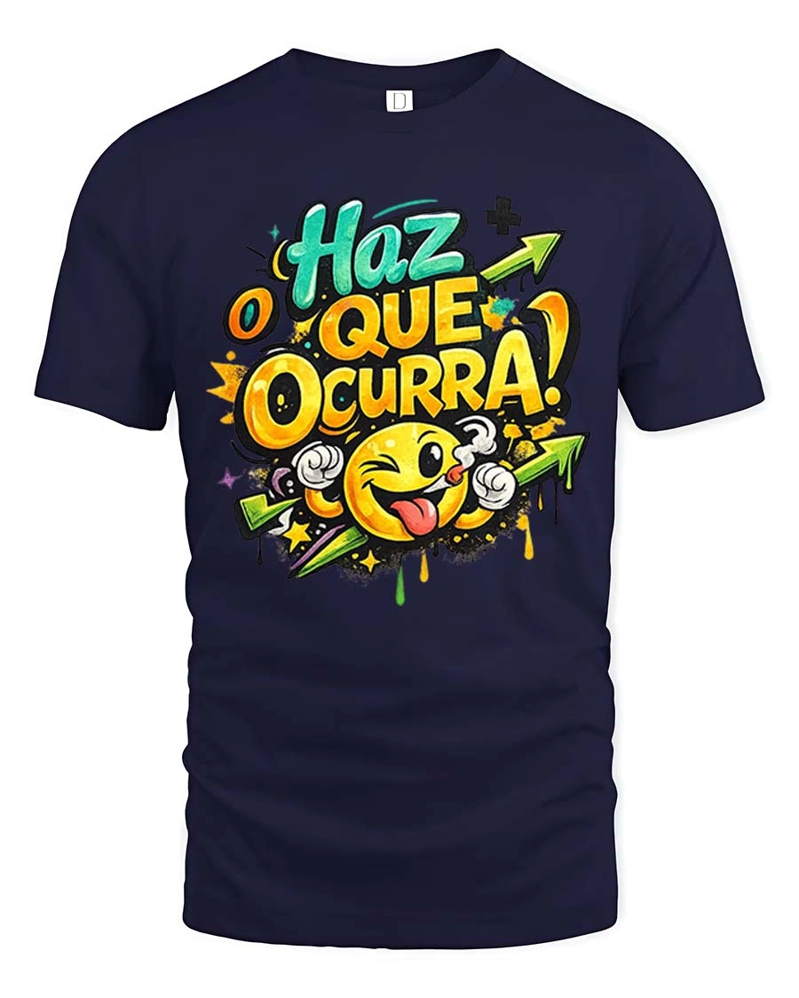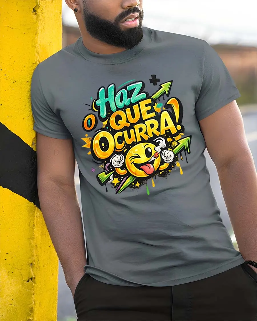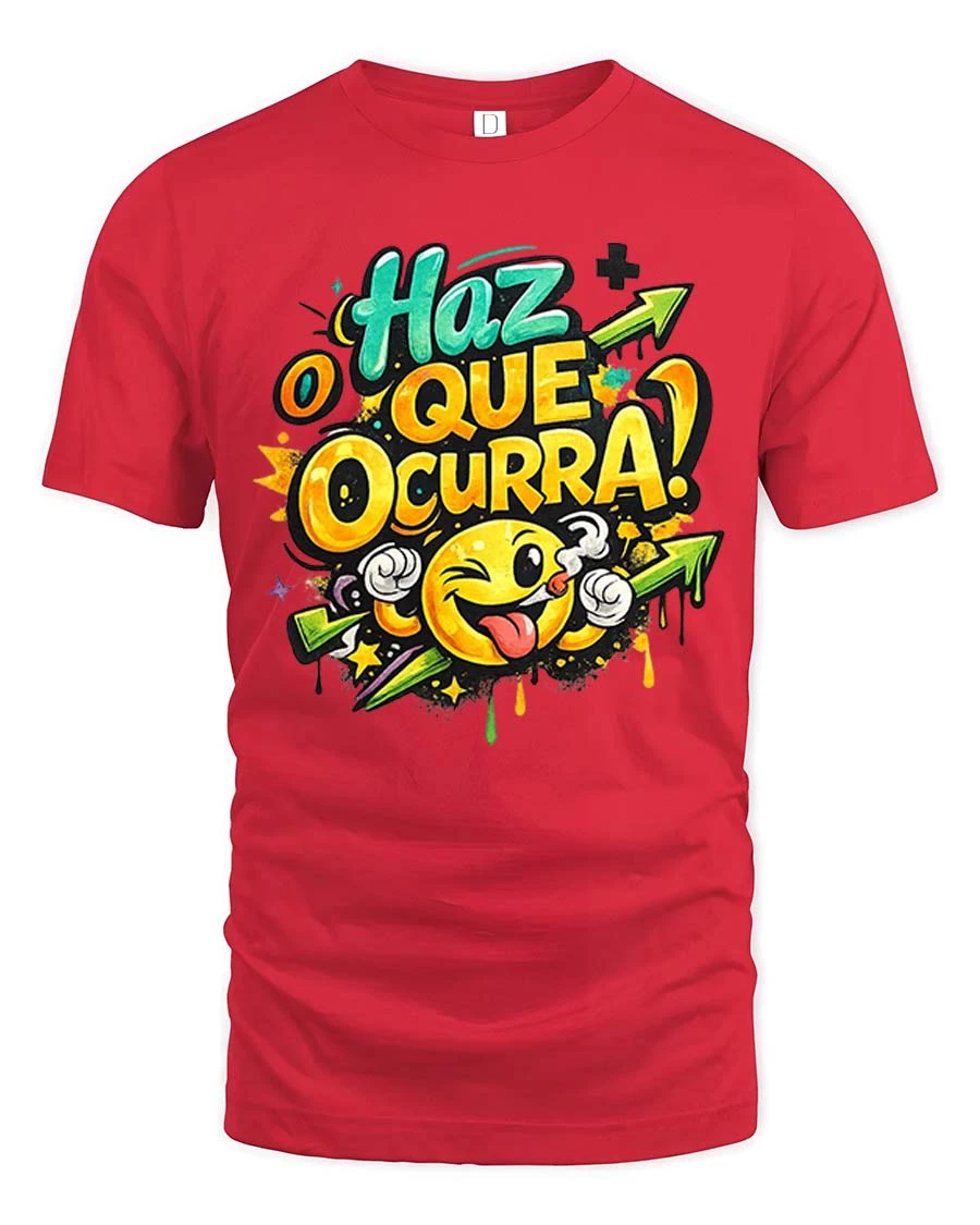 Haz Que Ocurra Smile Graphic Motivational Tshirt Fun Style brings bold energy and positive attitude into everyday fashion.