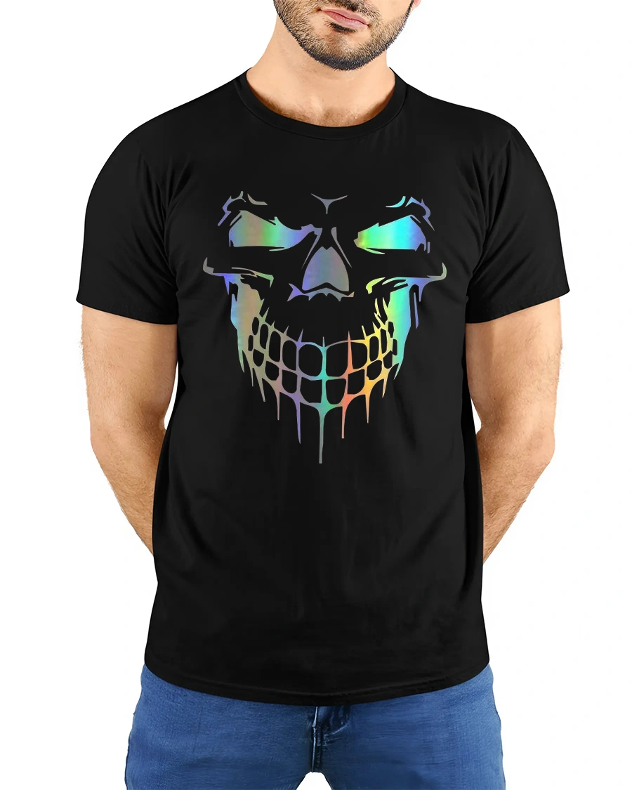 Wearing the Holographic Dripping Skull Neon Glow Savage Graphic Art Tee adds striking visual impact to casual outfits. The dripping rainbow effect enhances the artwork’s intensity, making it an excellent choice for concerts, night events, festivals, or anyone who enjoys statement pieces with modern flair. Its unique blend of dark elements and glowing color gives the tee a memorable look that captures attention with ease.