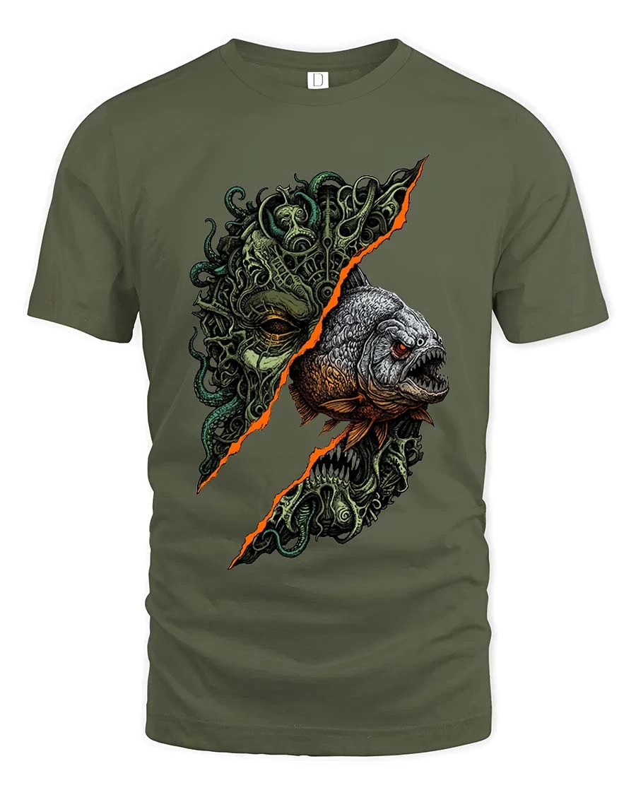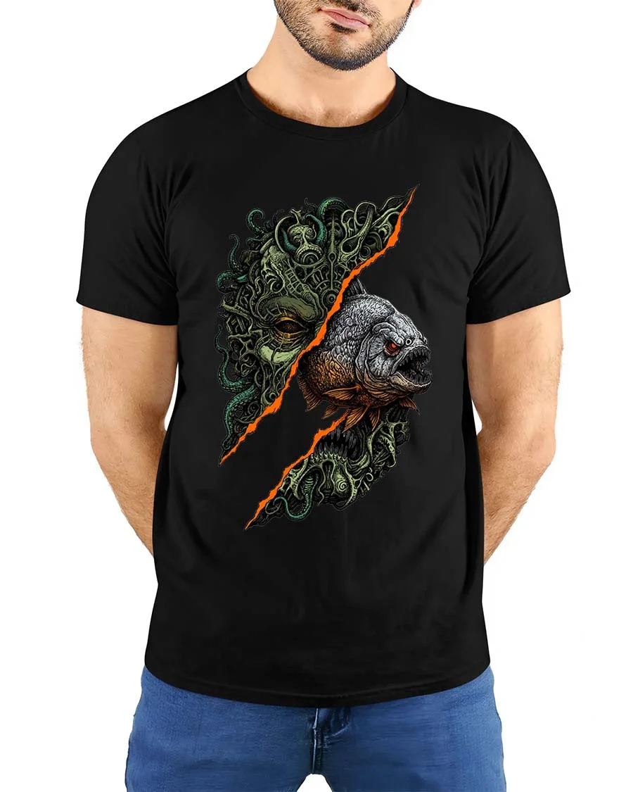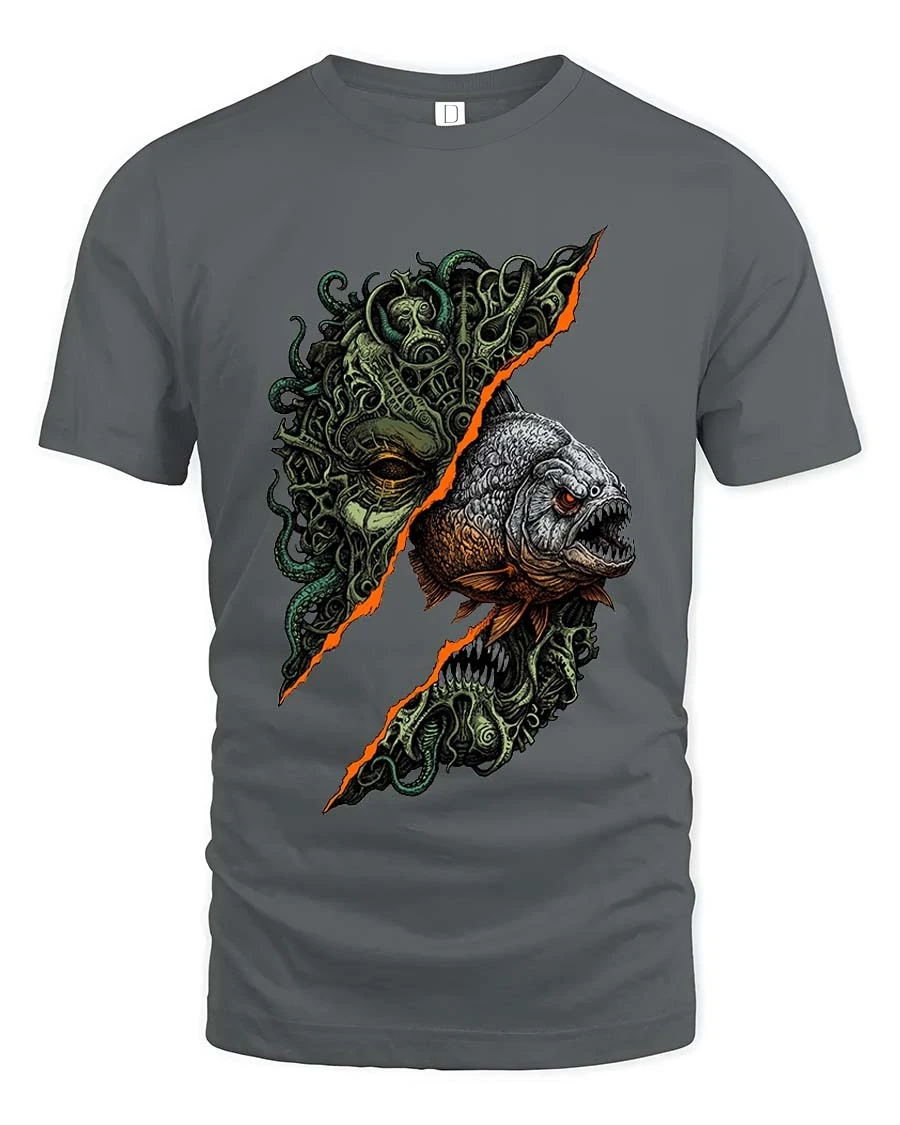 Horror Deep Sea Monster Fish Graphic T Shirt Dark Ocean Creature Art delivers a chilling and visually striking design inspired by the mysteries of the deep ocean.