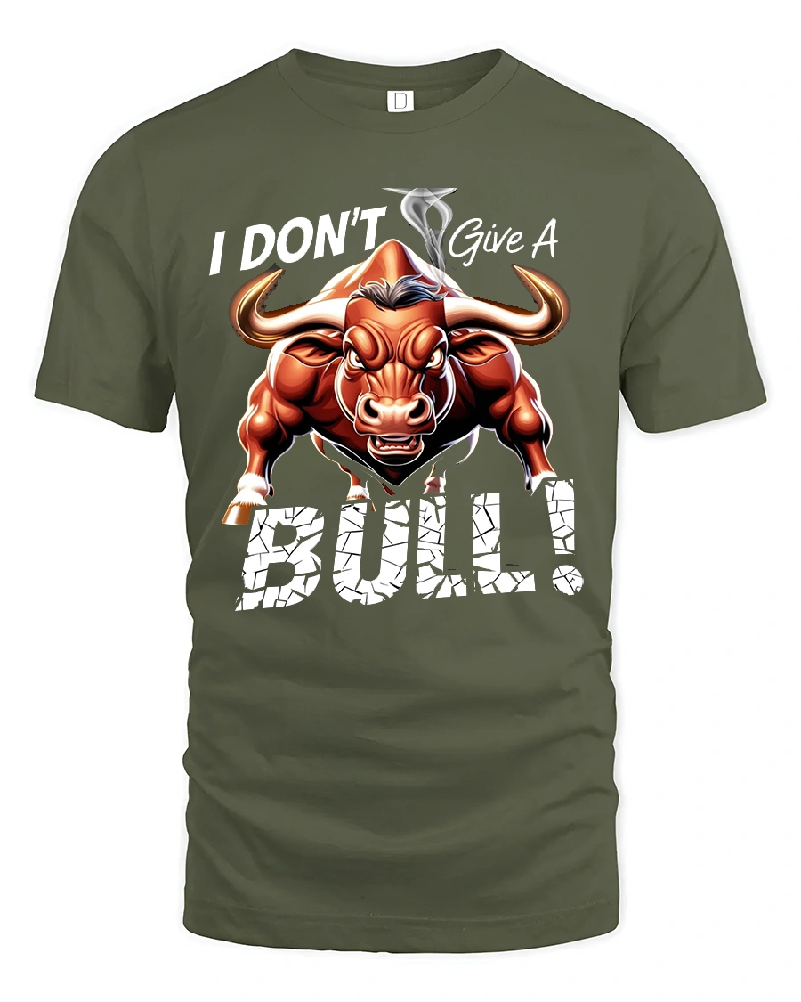 I Dont Give A Bull Bold Attitude Graphic Tee With Power Art - military green t-shirt on white background