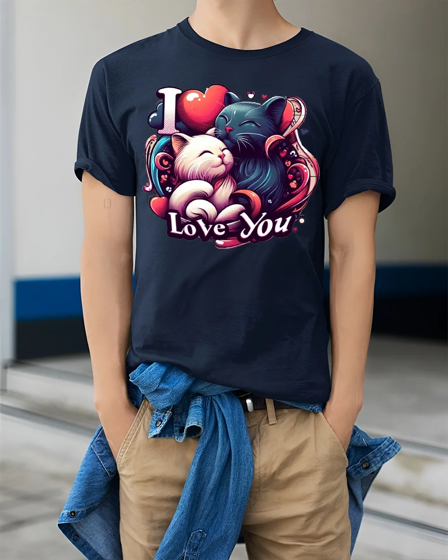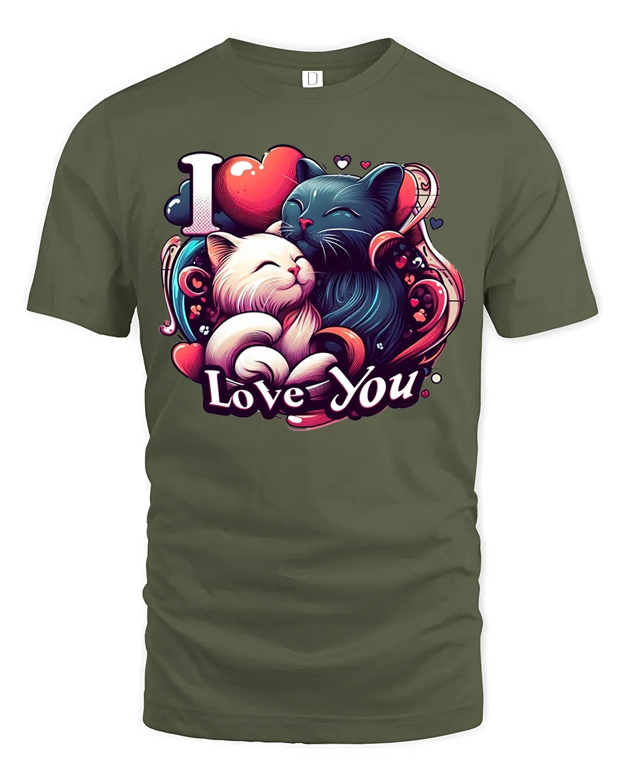 Gift this I Love You Cat T-Shirt to your partner, a cat-loving friend, or anyone who adores cute romantic fashion.