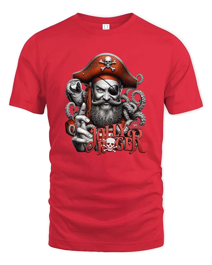 Jolly Roger Pirate Captain Skull Graphic T Shirt brings the bold spirit of legendary sea adventures to life with a striking pirate themed design.