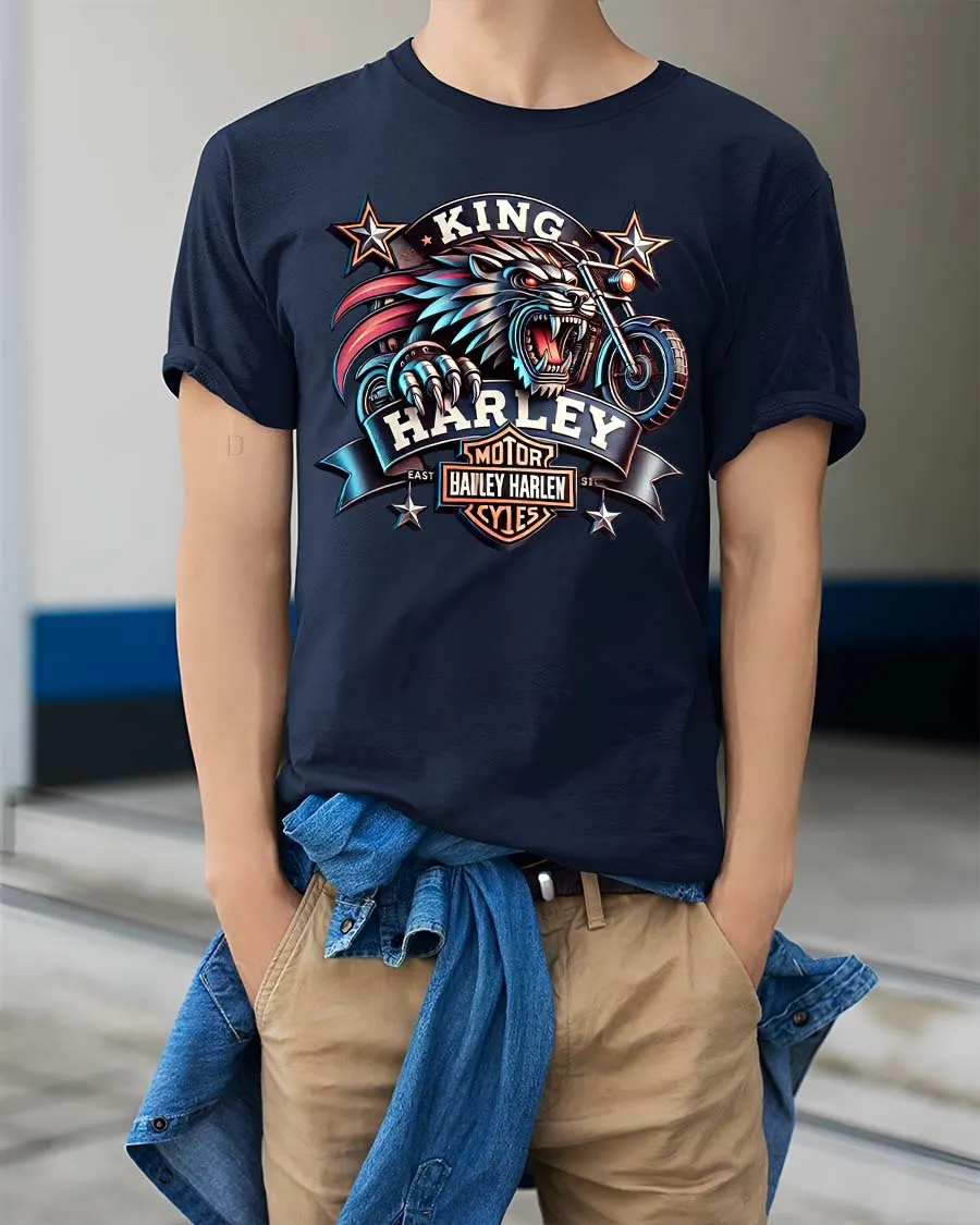 Perfect for fans of motorcycles, wild animal designs, and streetwear fashion, this tee brings a fearless and stylish vibe to your wardrobe.