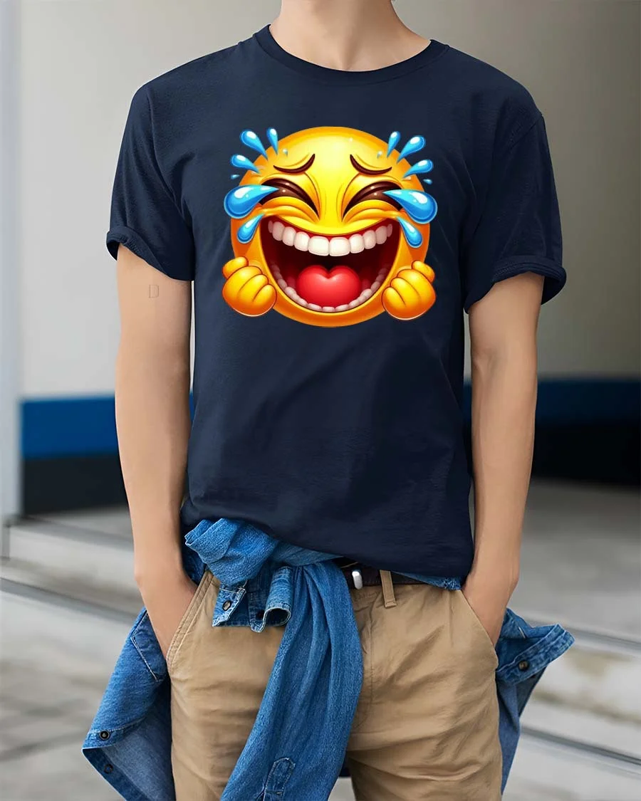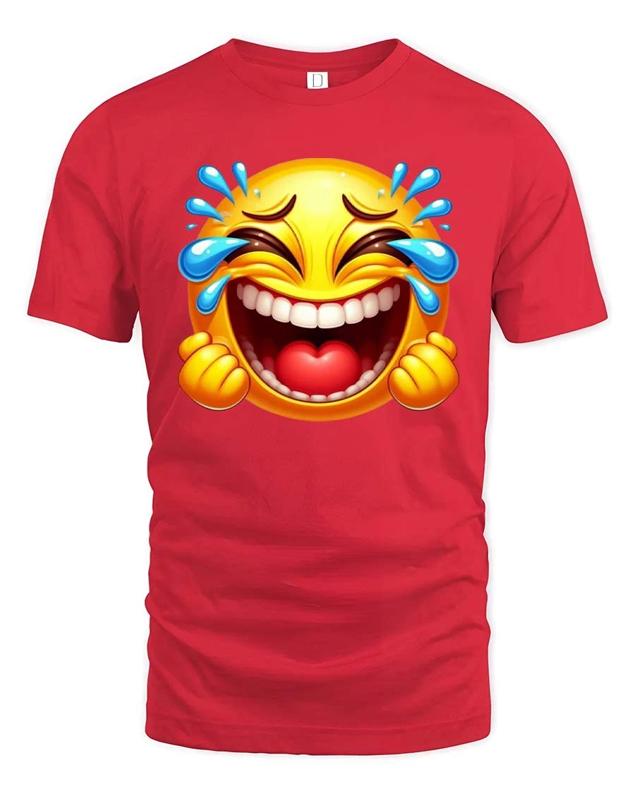 Bring the laughs wherever you go with this hilarious laughing cry emoji t-shirt featuring the iconic tears-of-joy expression.
