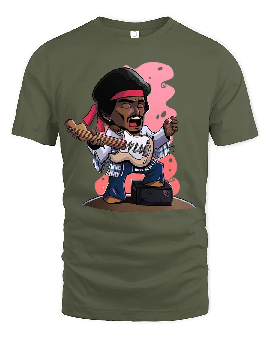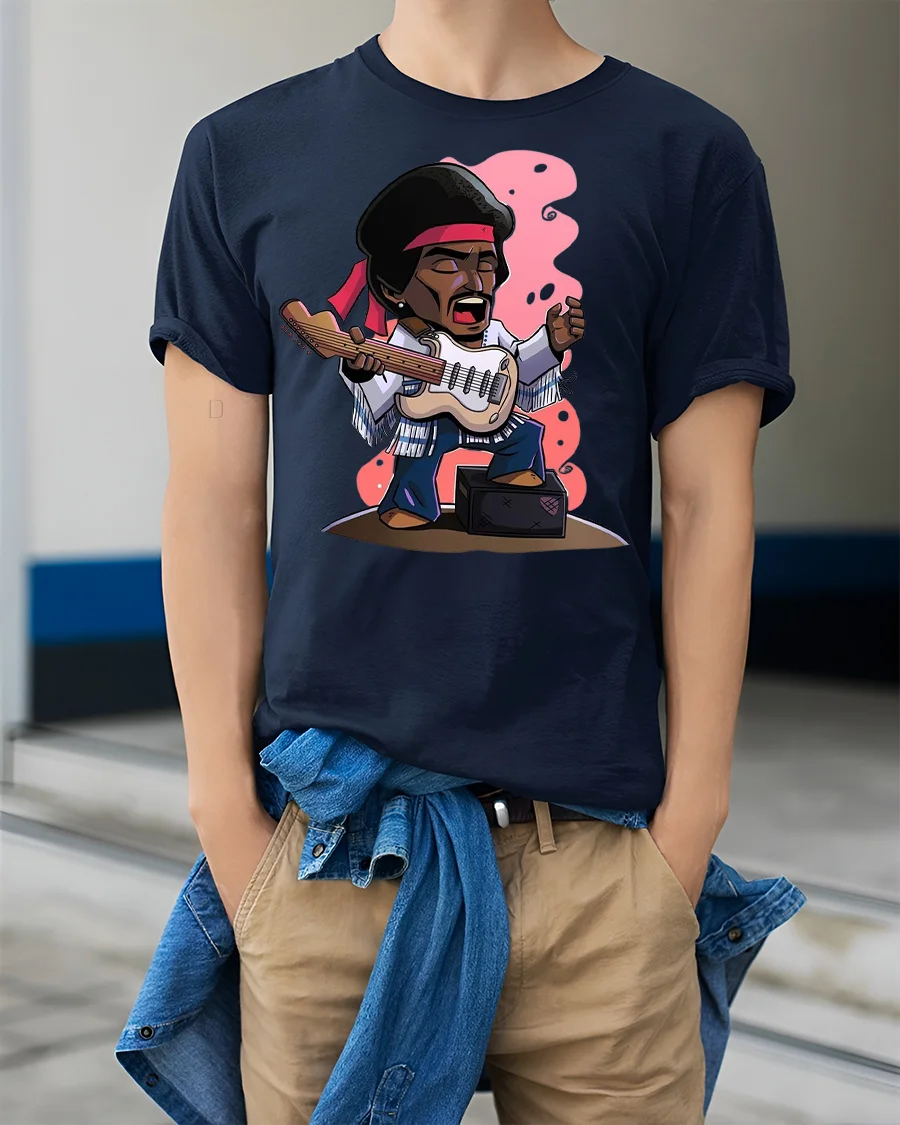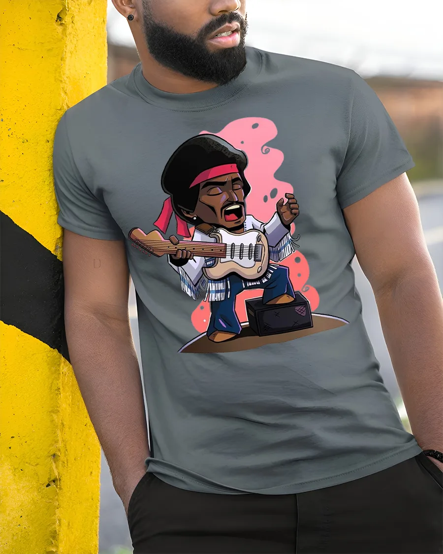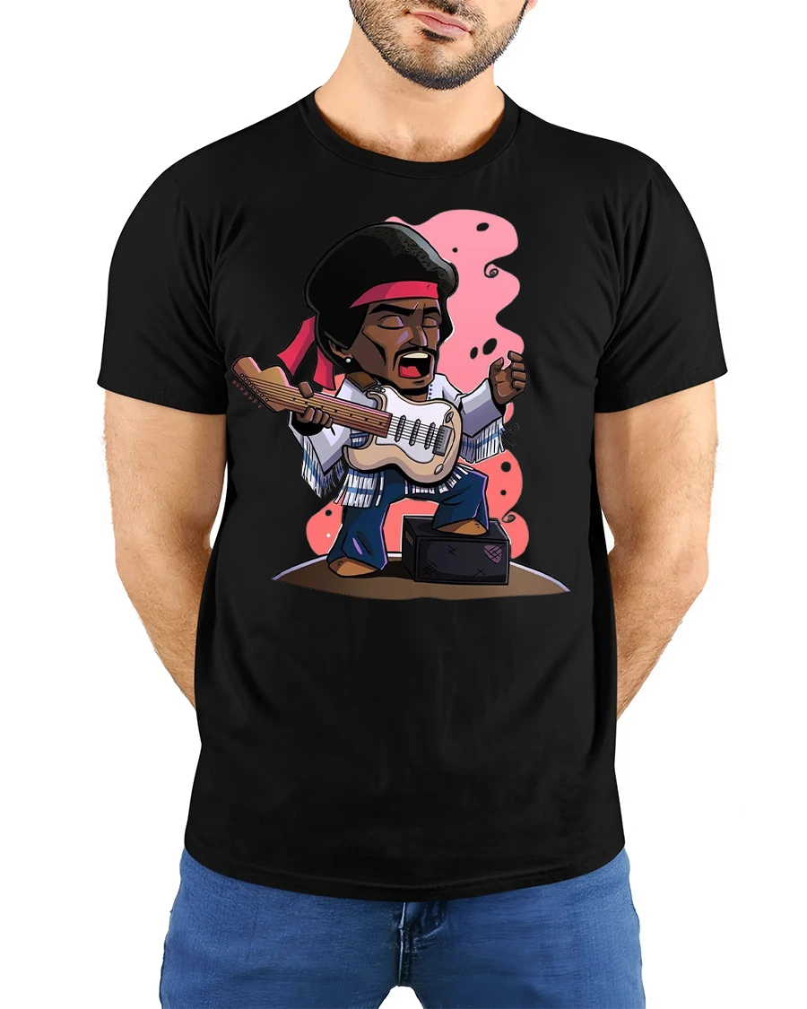 The Legendary Rock Guitar Player Cartoon Vintage Music Graphic T Shirt is ideal for music fans who love expressive art and classic rock vibes.