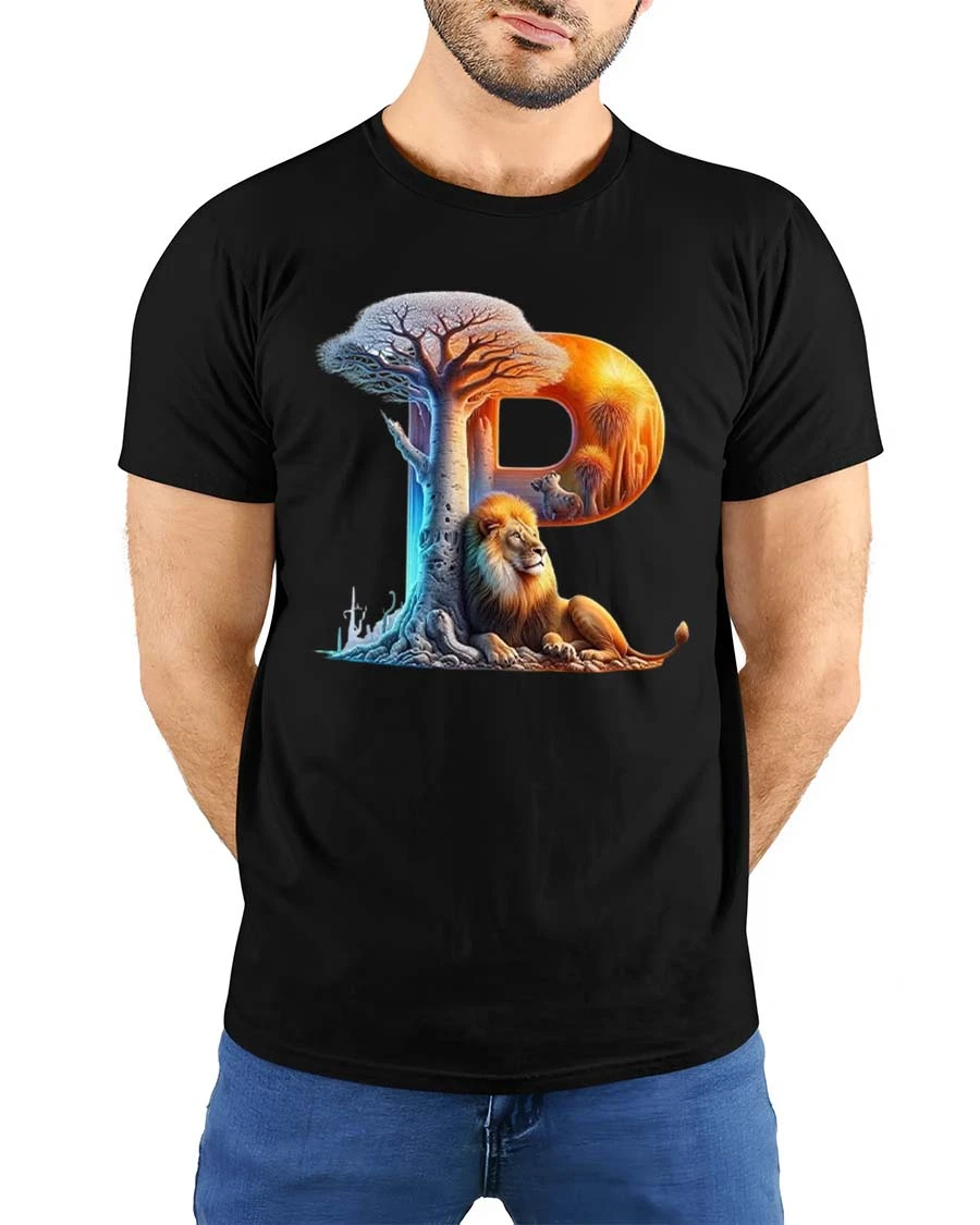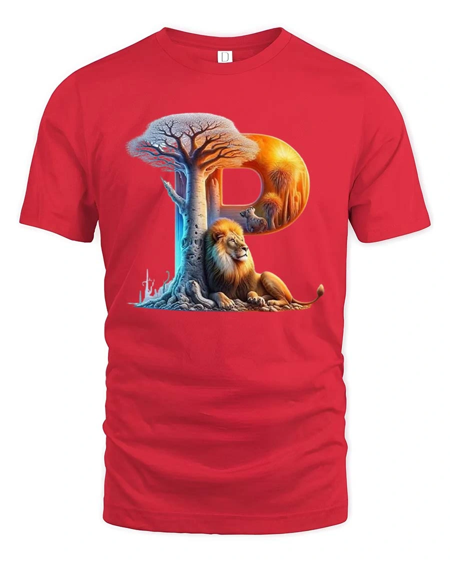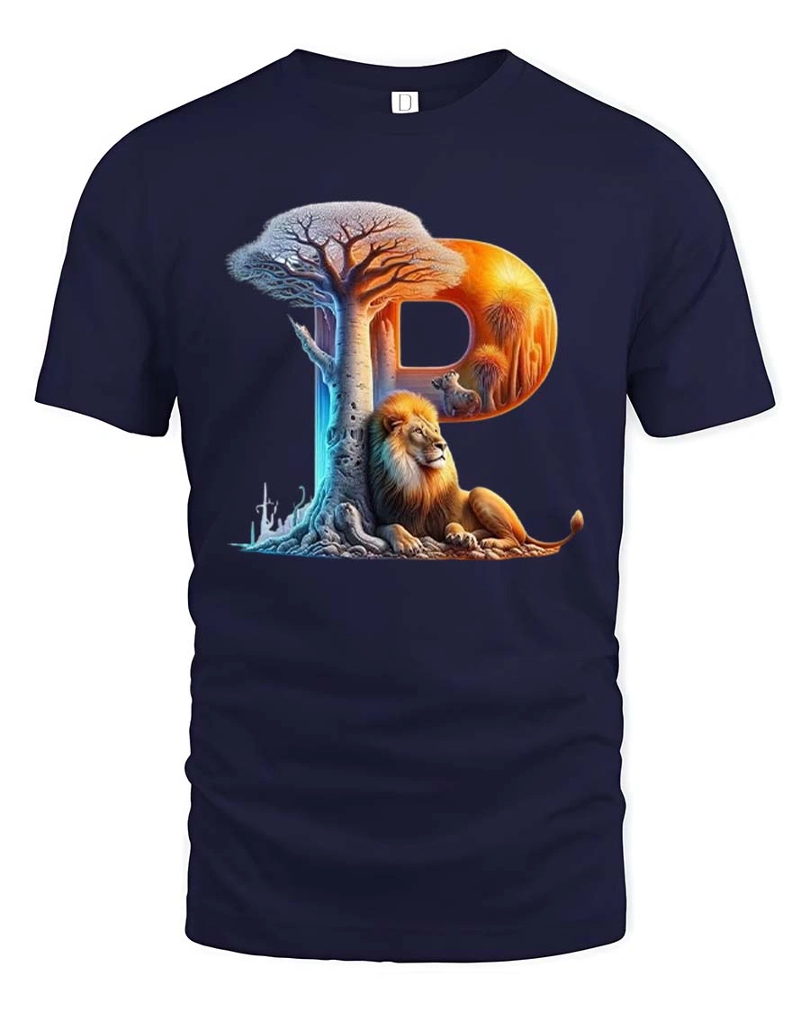 Be the first to review “Letter P Lion Tree Nature Scene Graphic T Shirt Artistic Style” Cancel reply