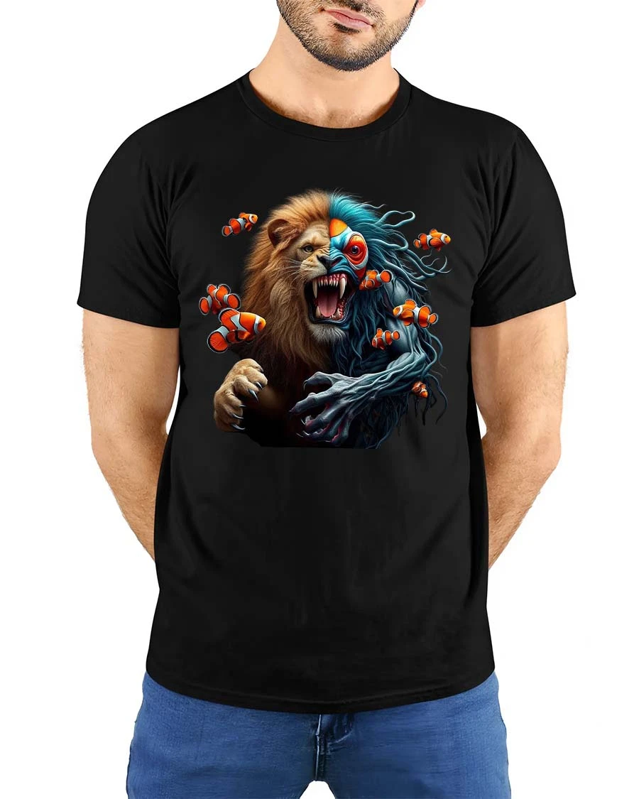 Lion Fish Hybrid Graphic T Shirt Wild Ocean Jungle Fusion Art delivers a bold and imaginative look that stands out instantly.