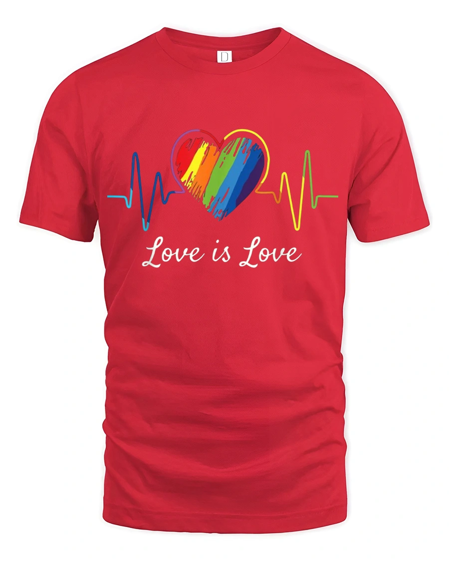 Crafted from soft, breathable material, the Love Is Love Rainbow Heartbeat Equality Pride T-Shirt provides comfort for everyday wear. The high-quality print ensures the rainbow colors stay vivid wash after wash, making it great for daily outfits, pride events, festivals, or gifting to someone special who values love and equality.