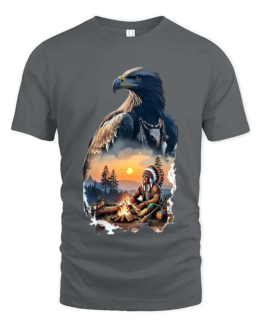 This Majestic Eagle Spirit Native Campfire Scenic Graphic T Shirt brings together powerful imagery and a deep connection to nature.