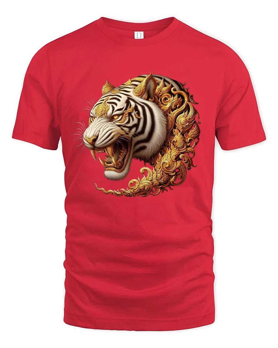Majestic Golden Tiger Head Ornamental Art Graphic T Shirt - red t-shirt on white background