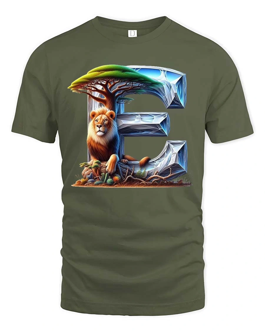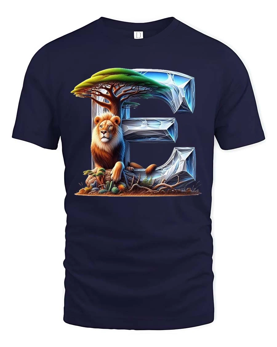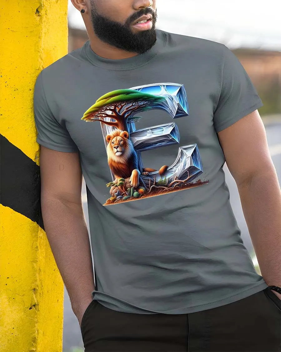 Lion Letter E Nature Wildlife Artistic Graphic T Shirt combines bold typography with stunning wildlife art.