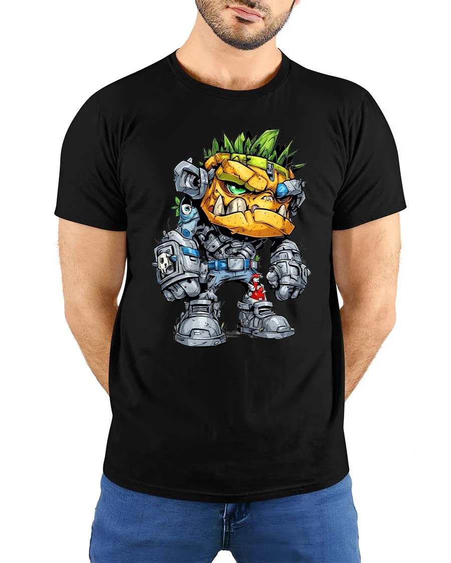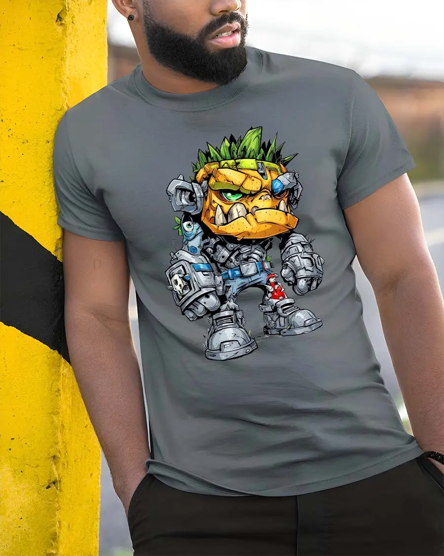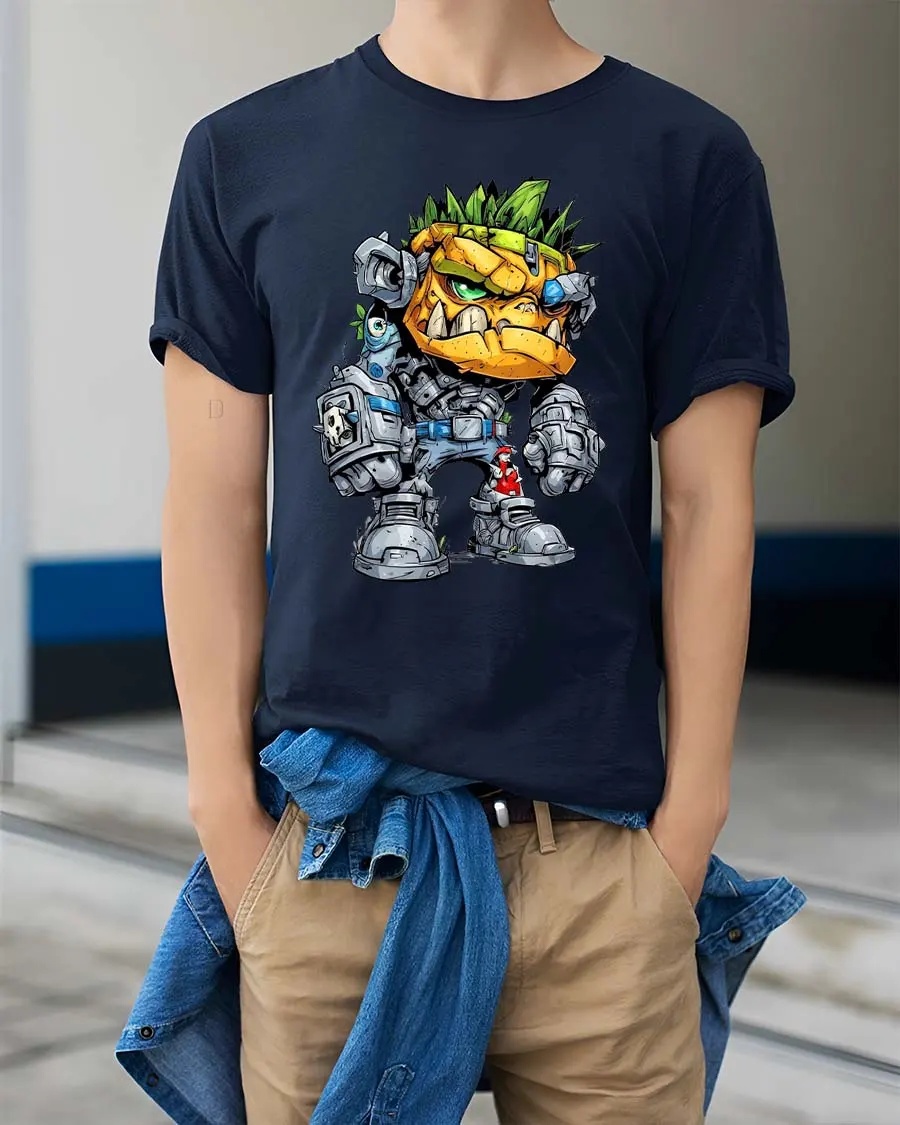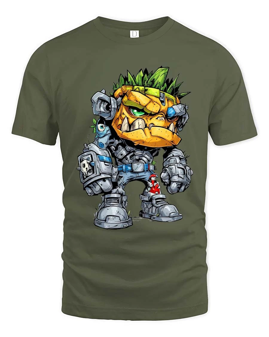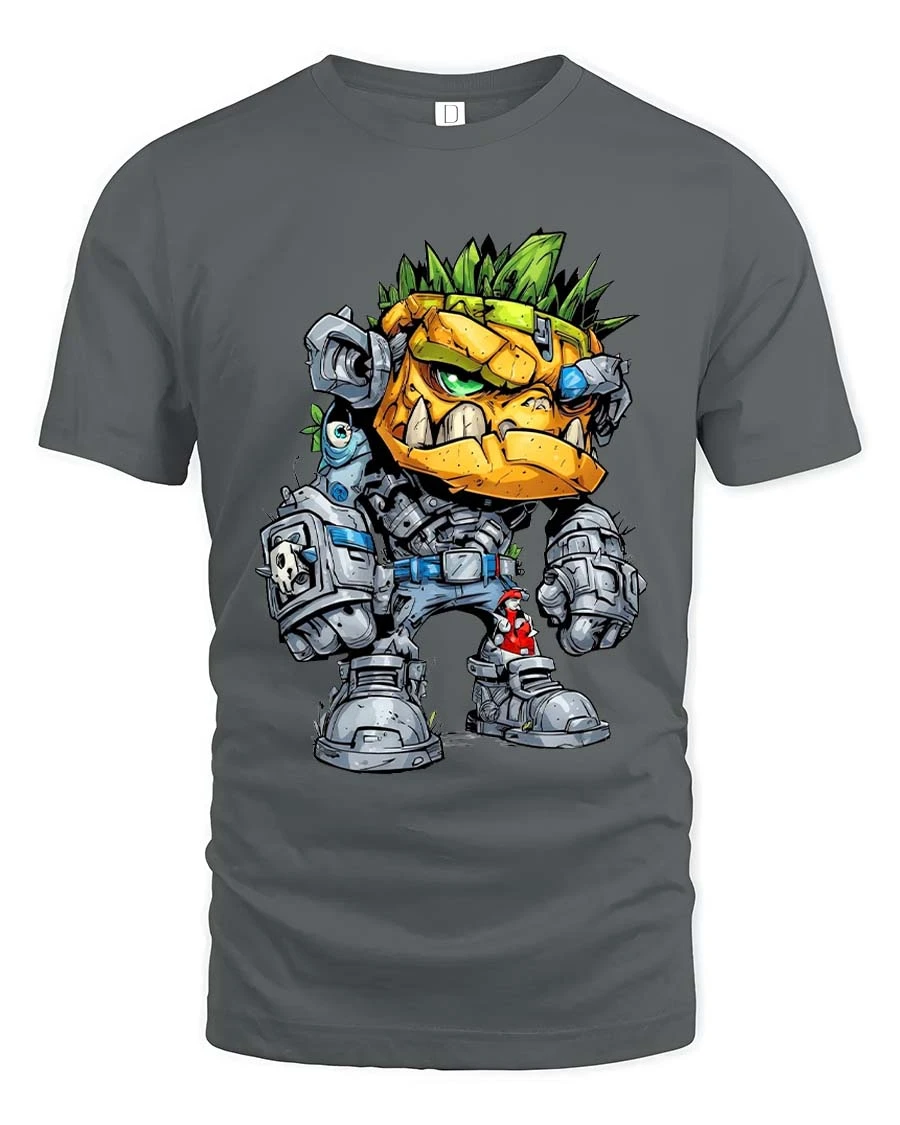 Mecha Beast Warrior T Shirt Sci Fi Cartoon Graphic Art Tee features a bold and imaginative fusion of a fierce creature and mechanical armor design.