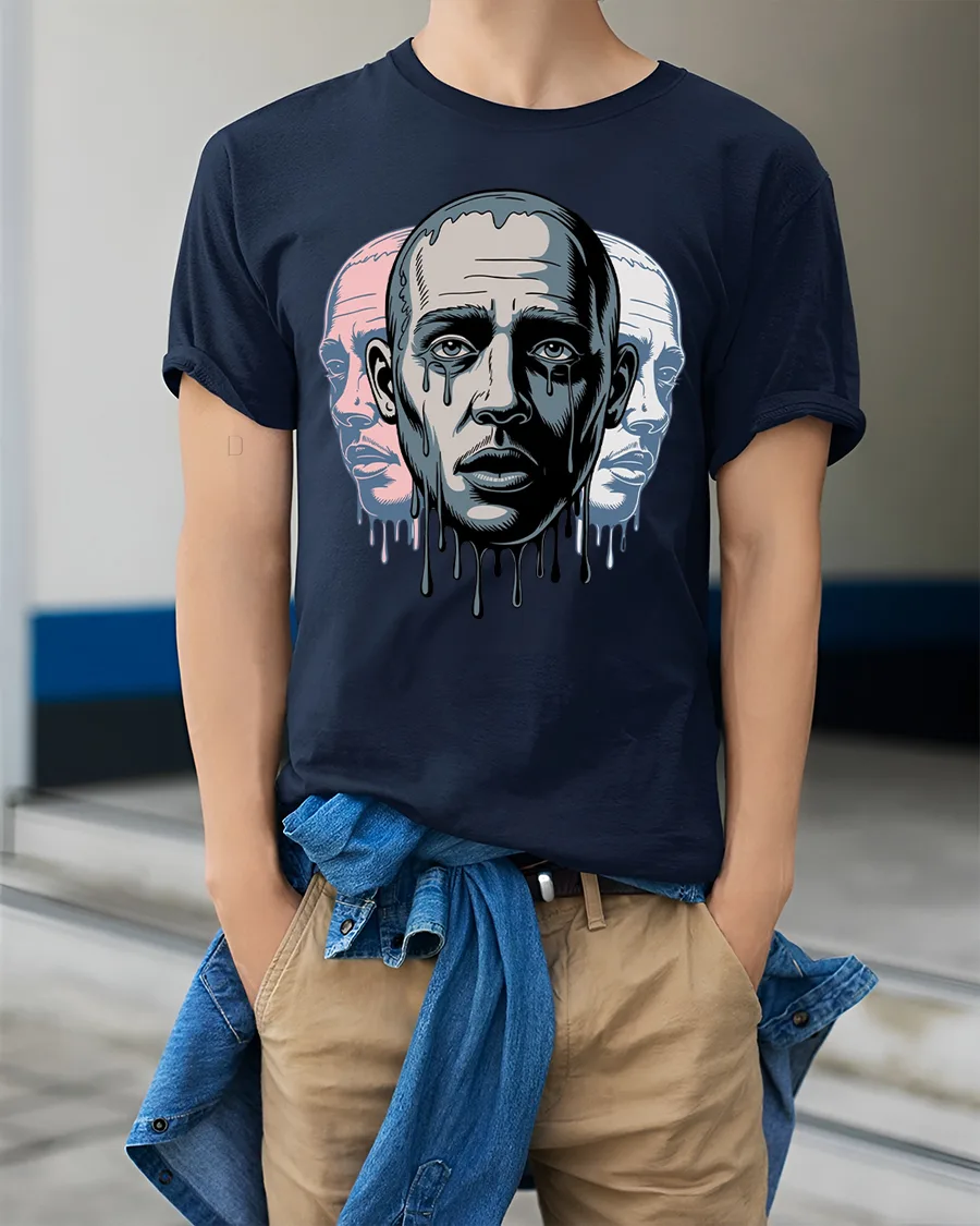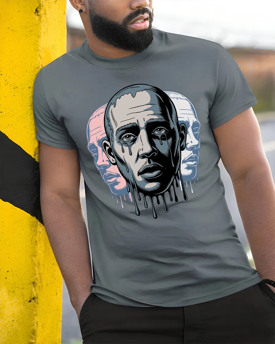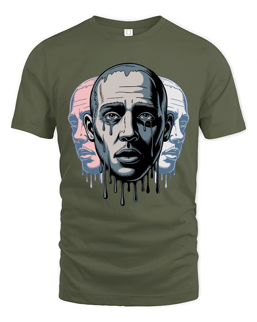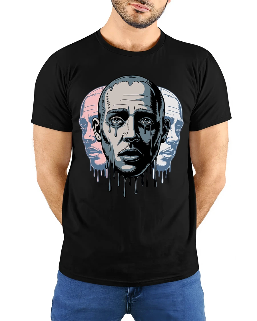 Melting Face Triple Portrait Surreal Art Graphic T Shirt delivers a powerful emotional visual inspired by modern surreal art.