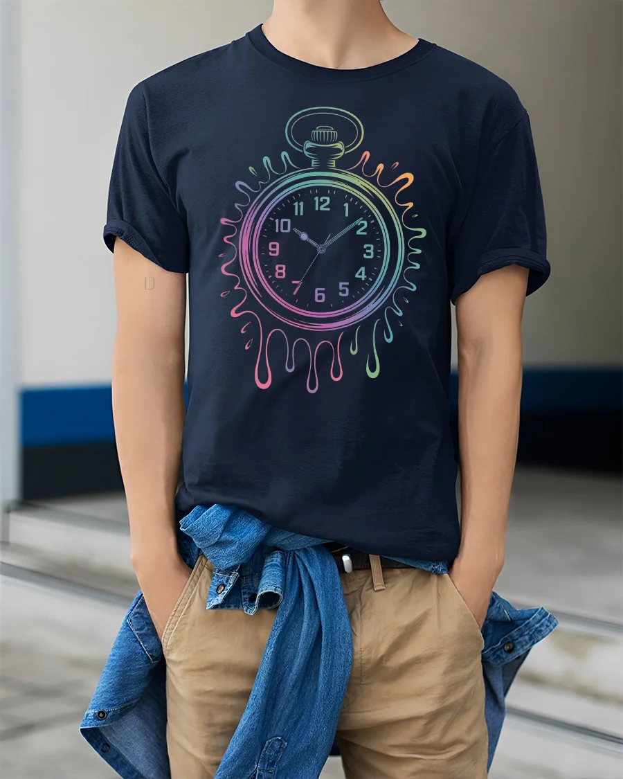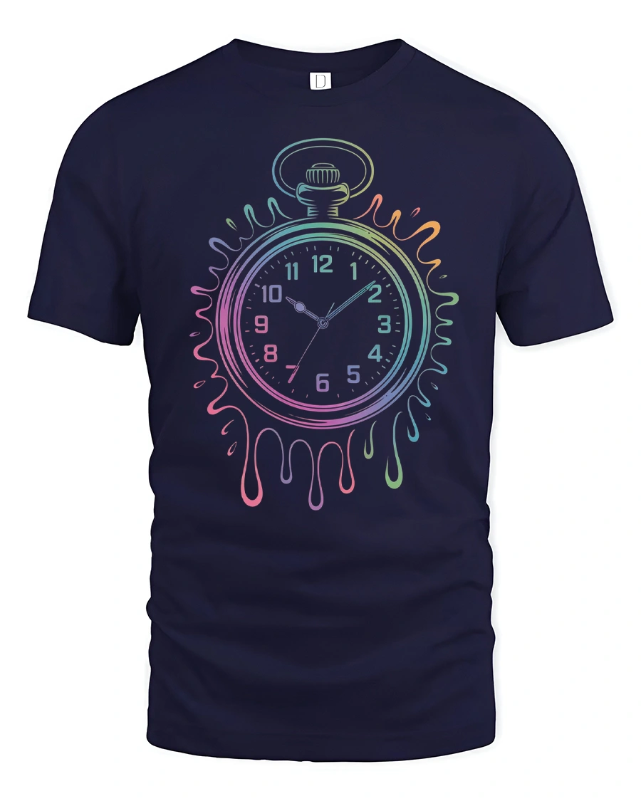 Made from premium cotton, this melting clock t-shirt delivers lasting comfort and softness while keeping the design crisp and eye-catching. The high-quality print preserves every gradient and color detail, wash after wash, making it ideal for everyday wear or artistic expression.