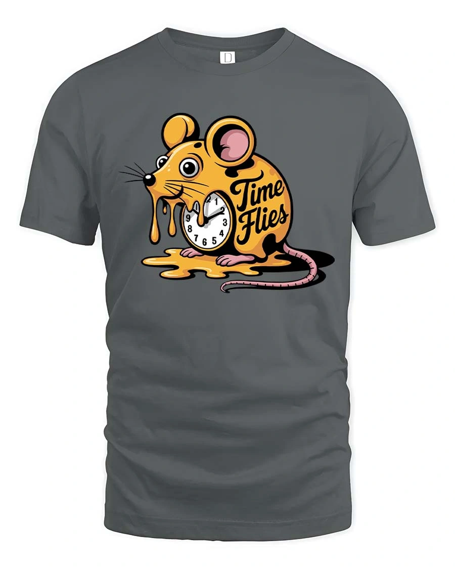 Melting Time Flies Mouse Graphic Funny Cartoon T-Shirt delivers a clever and playful design that stands out instantly.