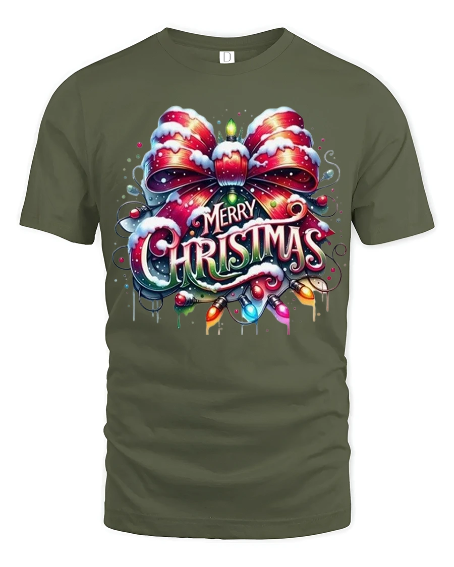 Merry Christmas Bow Lights Graphic Tee With Festive Cheer brings classic holiday joy together with a bold artistic design.