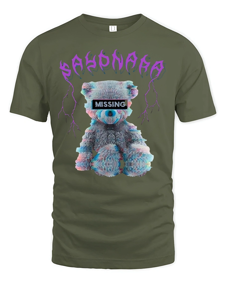 Featuring a distorted teddy bear with a “MISSING” label and glitch effects, this design brings a mix of retro vaporwave vibes and modern streetwear attitude.