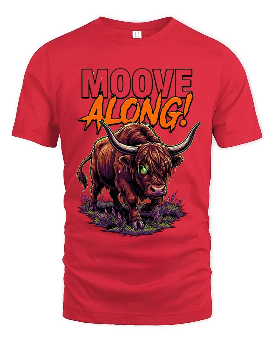 Mooove Along Funny Highland Cow Attitude Graphic T Shirt - red t-shirt on white background