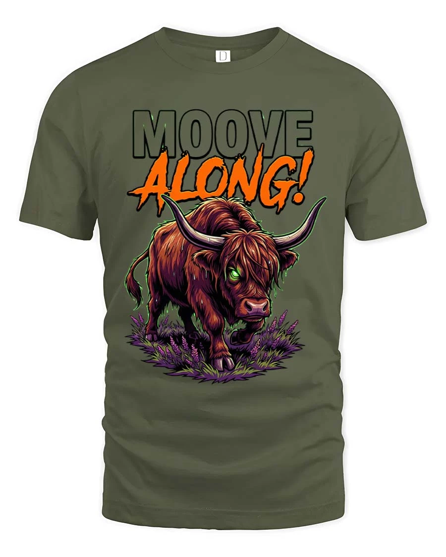 Mooove Along Funny Highland Cow Attitude Graphic T Shirt - military green t-shirt on white background