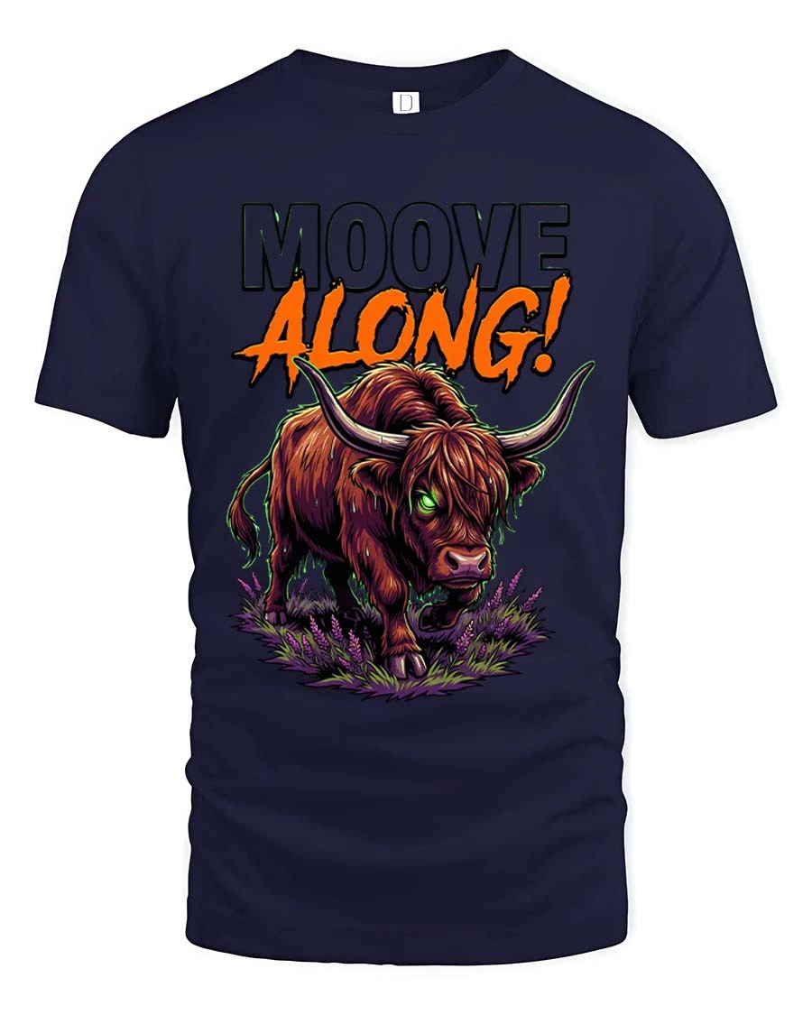 Mooove Along Funny Highland Cow Attitude Graphic T Shirt - navy t-shirt on white background