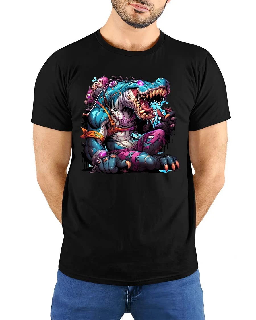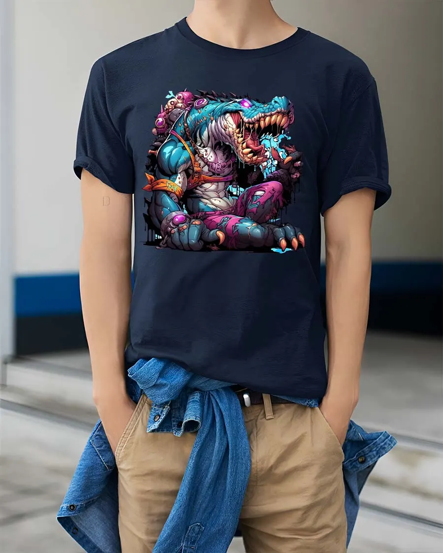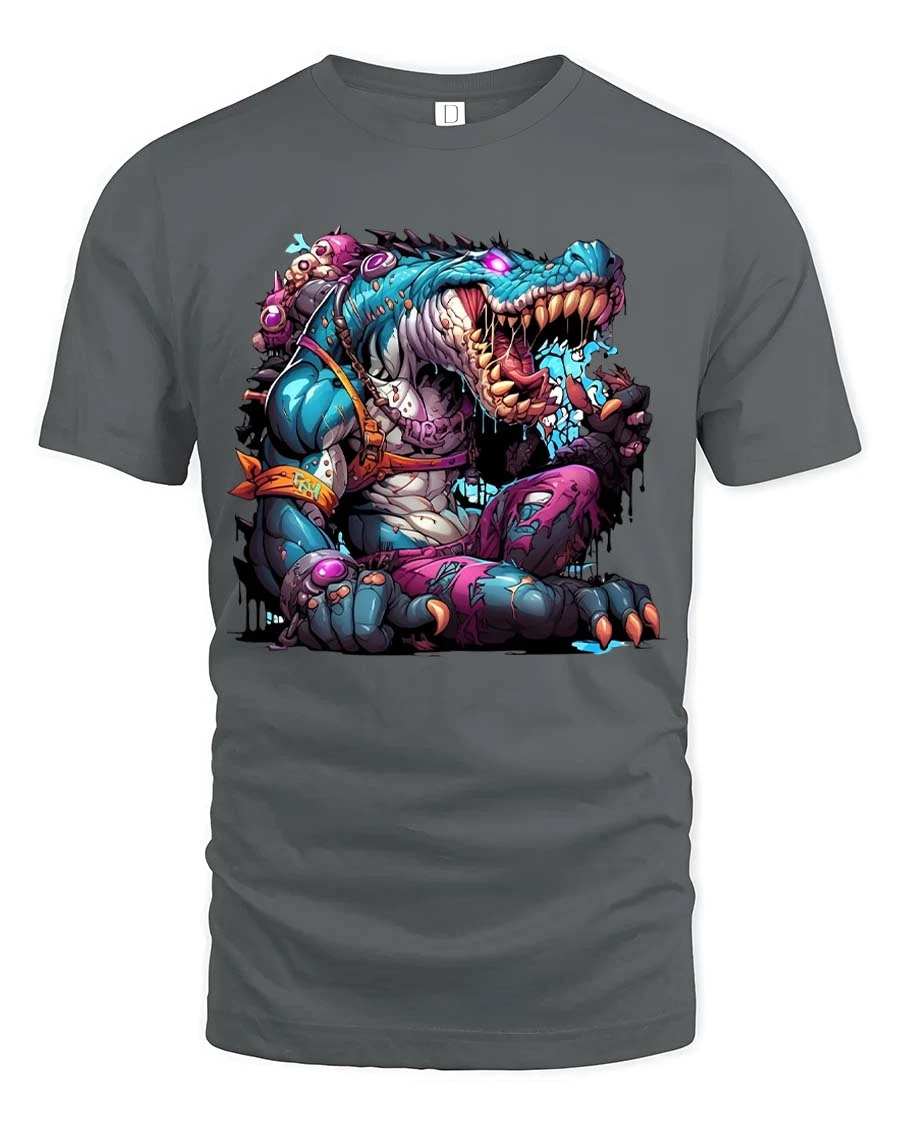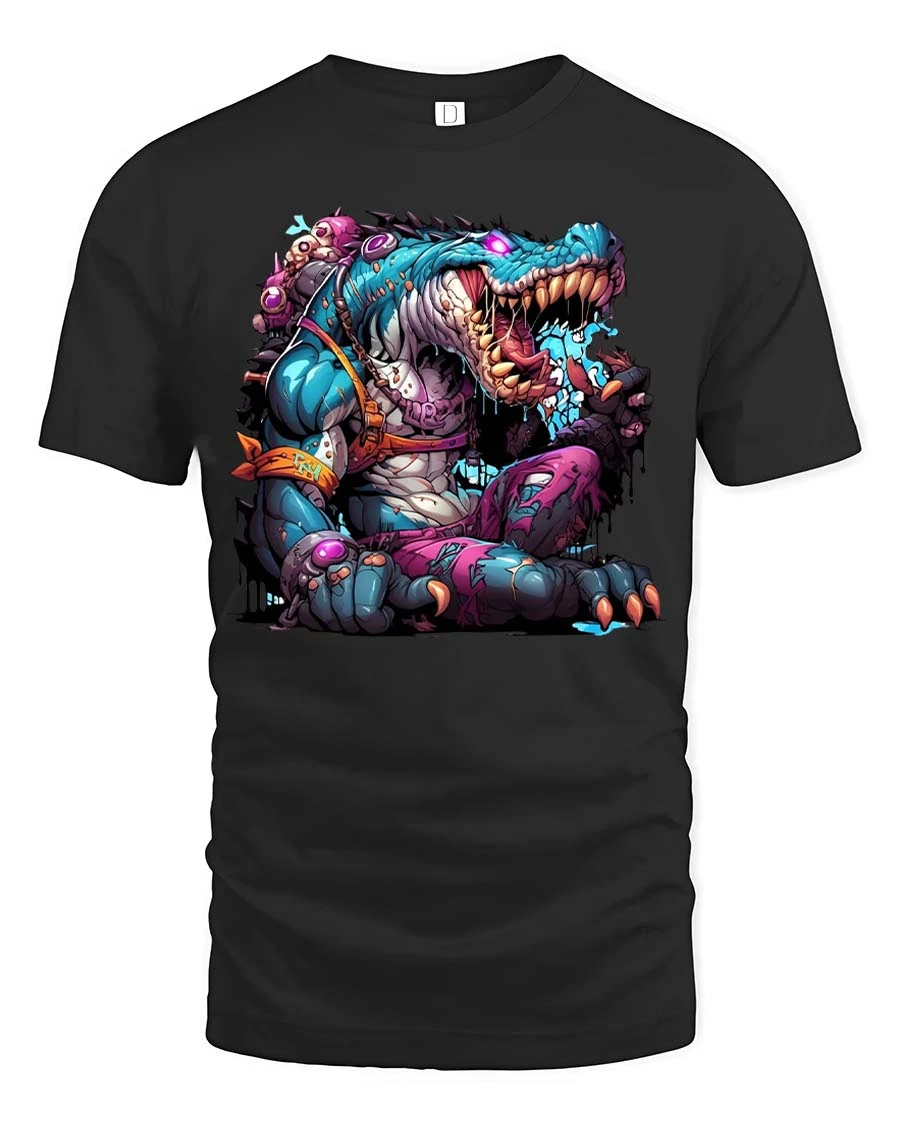 Mutant Crocodile Monster Graphic T Shirt Crazy Reptile Beast Tee features a bold and imaginative design of a fierce crocodile transformed into a colorful mutant creature.