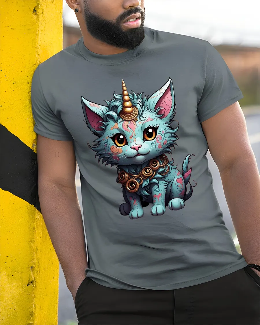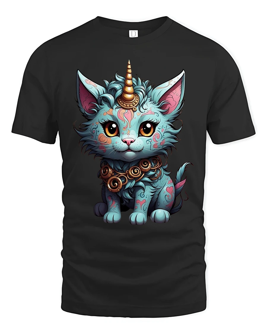 Mystical Cat Unicorn Tee brings a whimsical touch to your wardrobe with its beautifully detailed fantasy cat character featuring a glowing unicorn horn, bright expressive eyes and intricate decorative patterns. The vivid colors and enchanting design make this tee stand out with a magical charm that appeals to fans of mythical creatures and artistic graphics. This unique artwork blends cuteness with fantasy flair, creating a stunning statement piece.