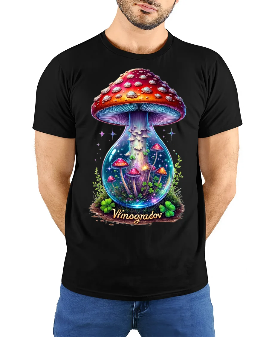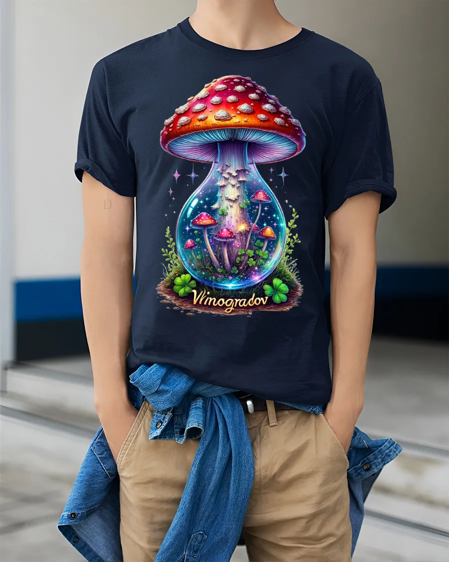 Mystical Galaxy Mushroom Terrarium Fantasy Art Tee Shirt brings a magical world to life with every wear. Featuring a breathtaking terrarium filled with glowing mushrooms, dreamy colors, and cosmic sparkles, this tee is designed for anyone who loves fantasy, nature aesthetics, and vibrant artistic prints. The enchanting artwork captures a miniature universe inside a glass vessel, making it a standout piece for mushroom lovers, festival fans, and anyone with a taste for imaginative style.