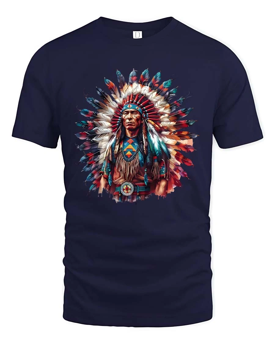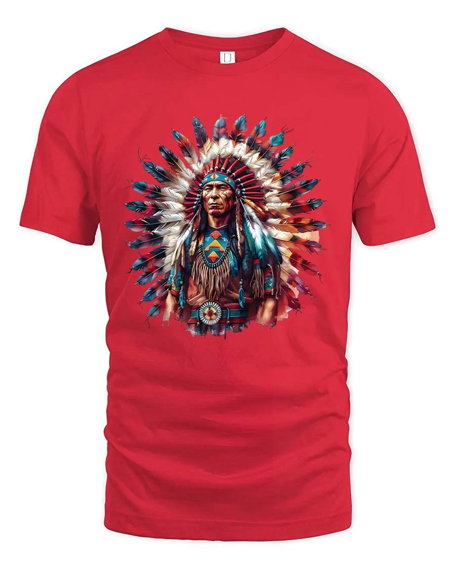 Native Chief Feather Headdress Colorful Cultural Art T Shirt showcases a striking and artistic design inspired by traditional heritage and powerful symbolism.